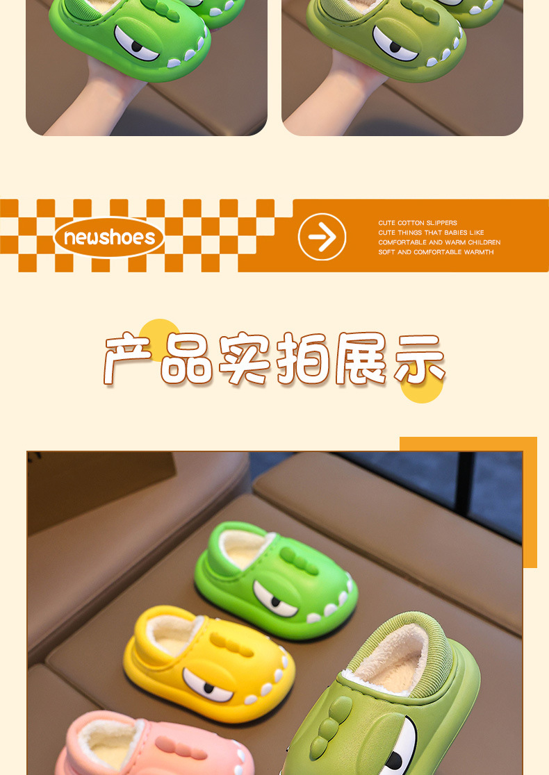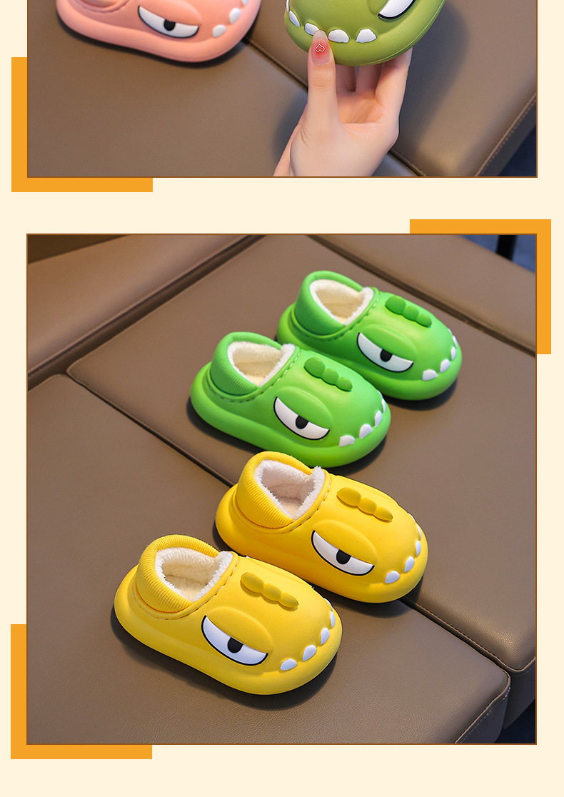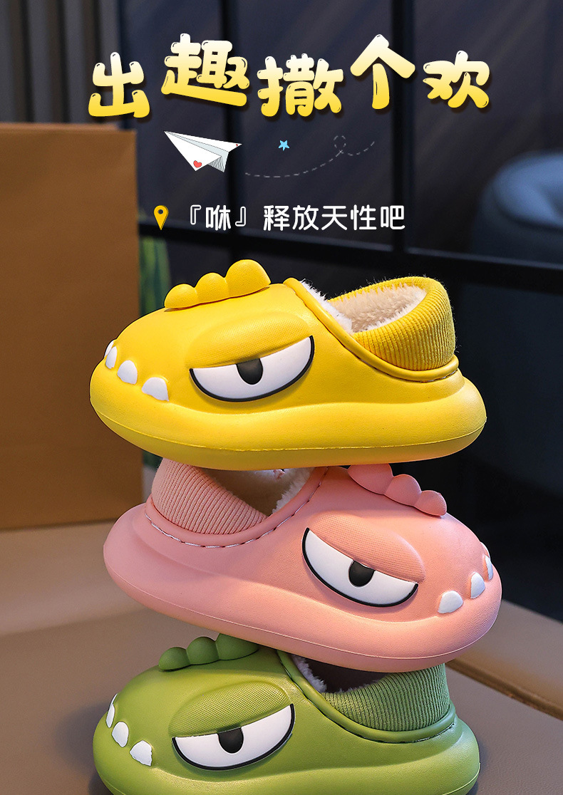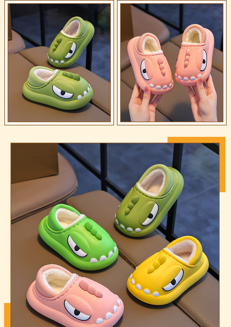 Zapatillas de algodón para niños bolsas de tacones de otoño y invierno para niños impermeables para padres e hijos cálidos para el hogar zapatos de algodón de dinosaurio para bebés
