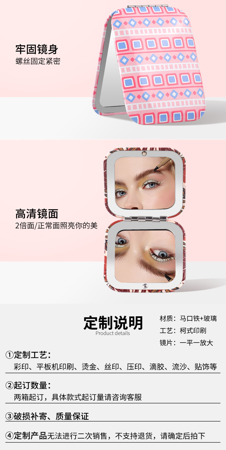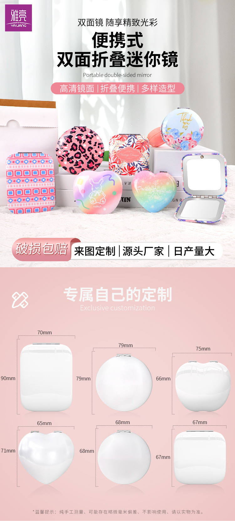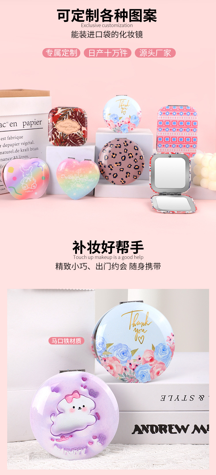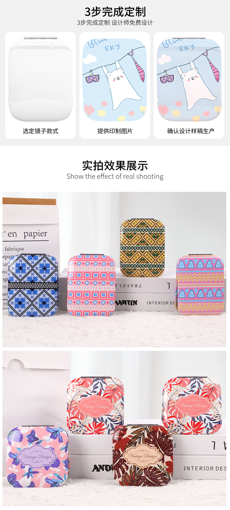 Espejo de moda de hojalata portátil delgado y ligero de moda Espejo OVNI de múltiples formas Espejo de doble cara con imagen en color personalizado