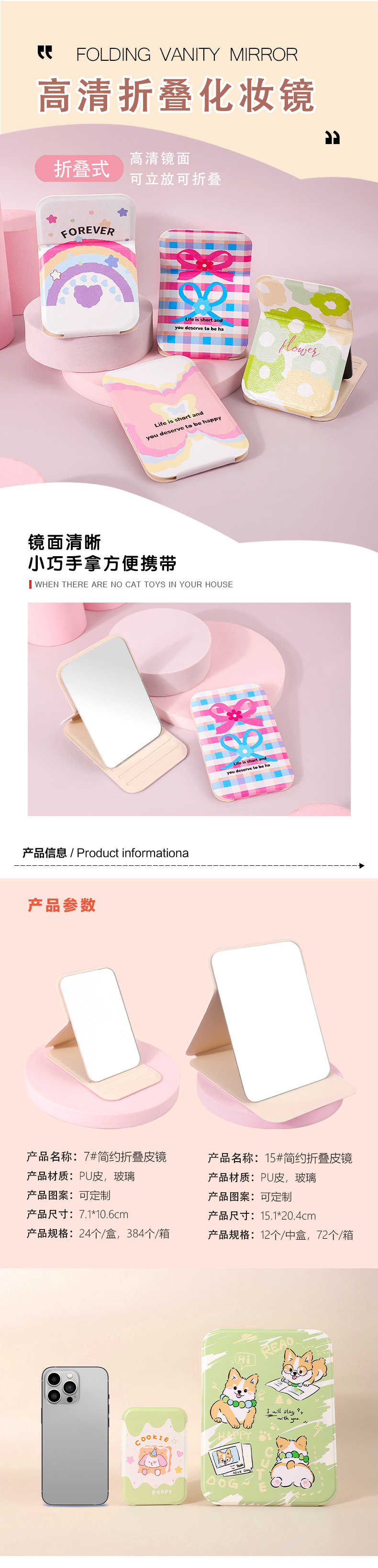 Espejo de maquillaje plegable al aire libre tipo de comodín dormitorio de estudiantes domésticos escritorio portátil HD vertical simple