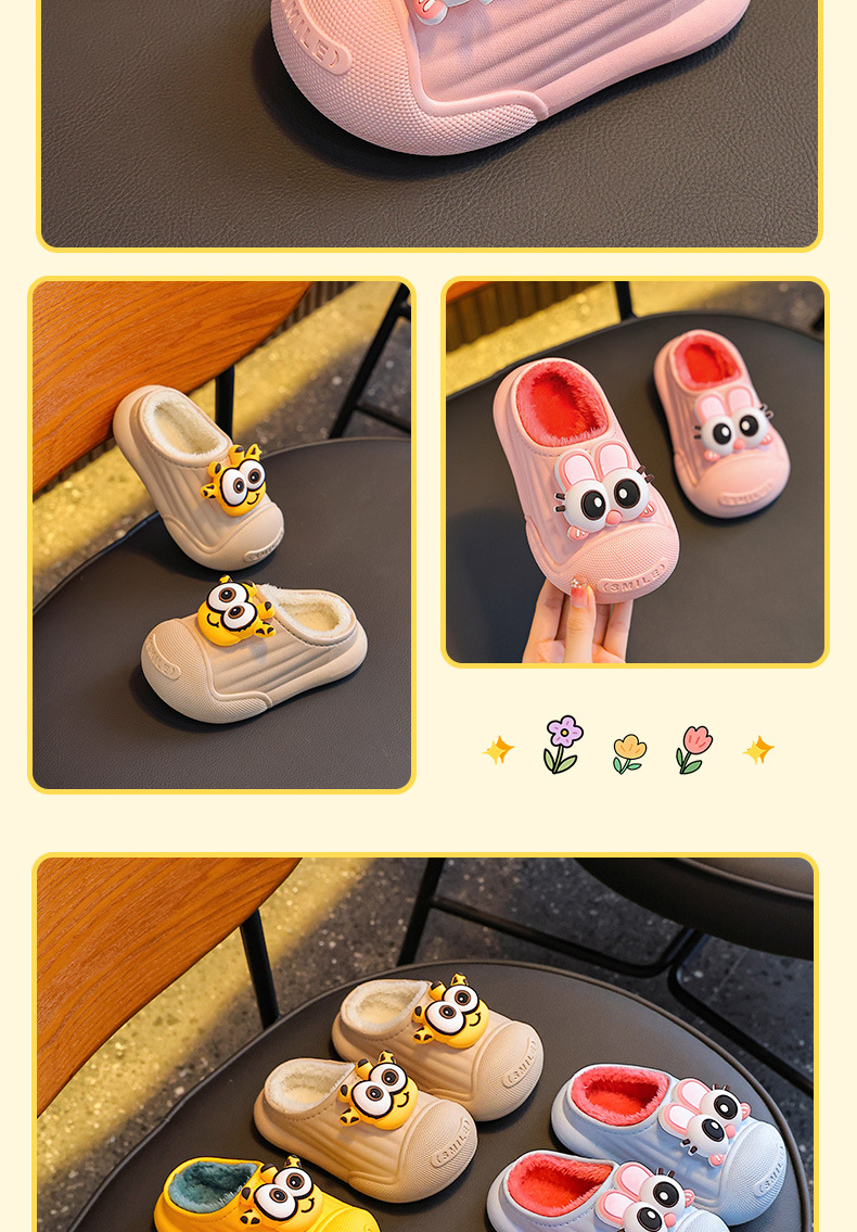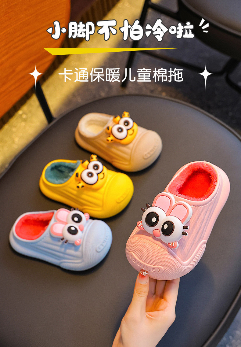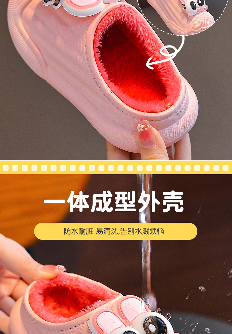 Otoño y invierno zapatillas de algodón para niños, niños y niñas, calentamiento de terciopelo impermeable, lindos zapatos de algodón para niños pequeños y medianos, bolsas caseras para bebés