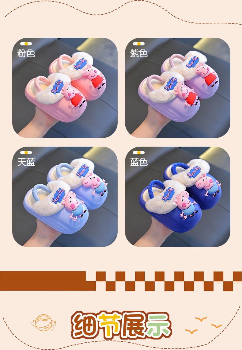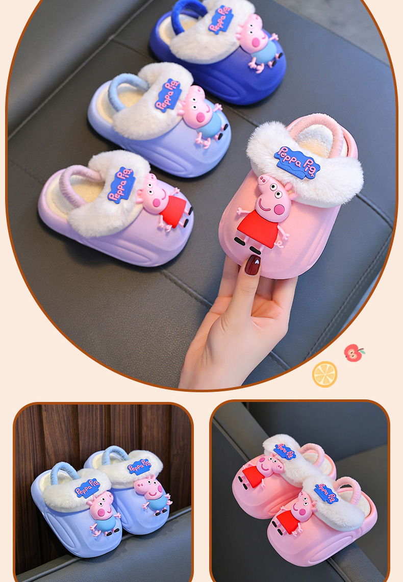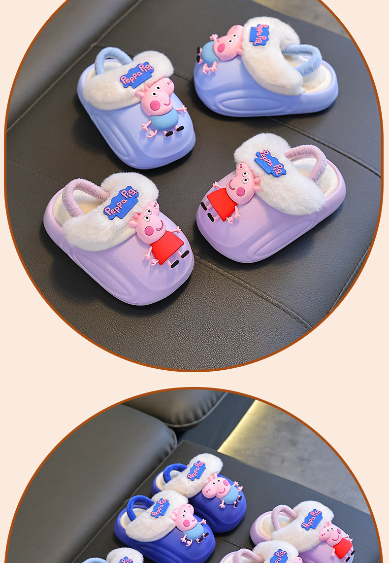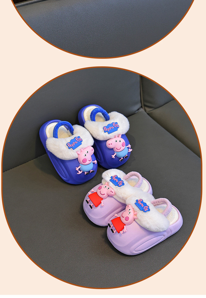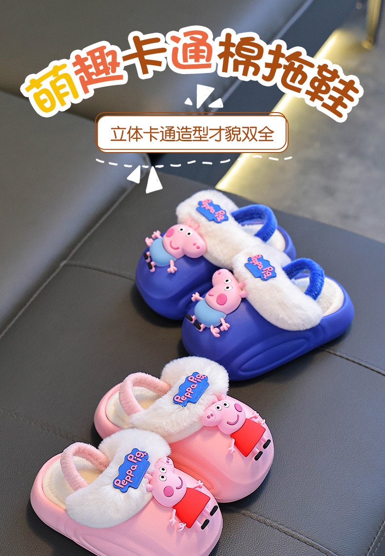 Piggy Page zapatillas de algodón de invierno para niños, niños, niñas y niñas, cinta elástica, calor y terciado, bolsas de tacones de algodón para niños y niños