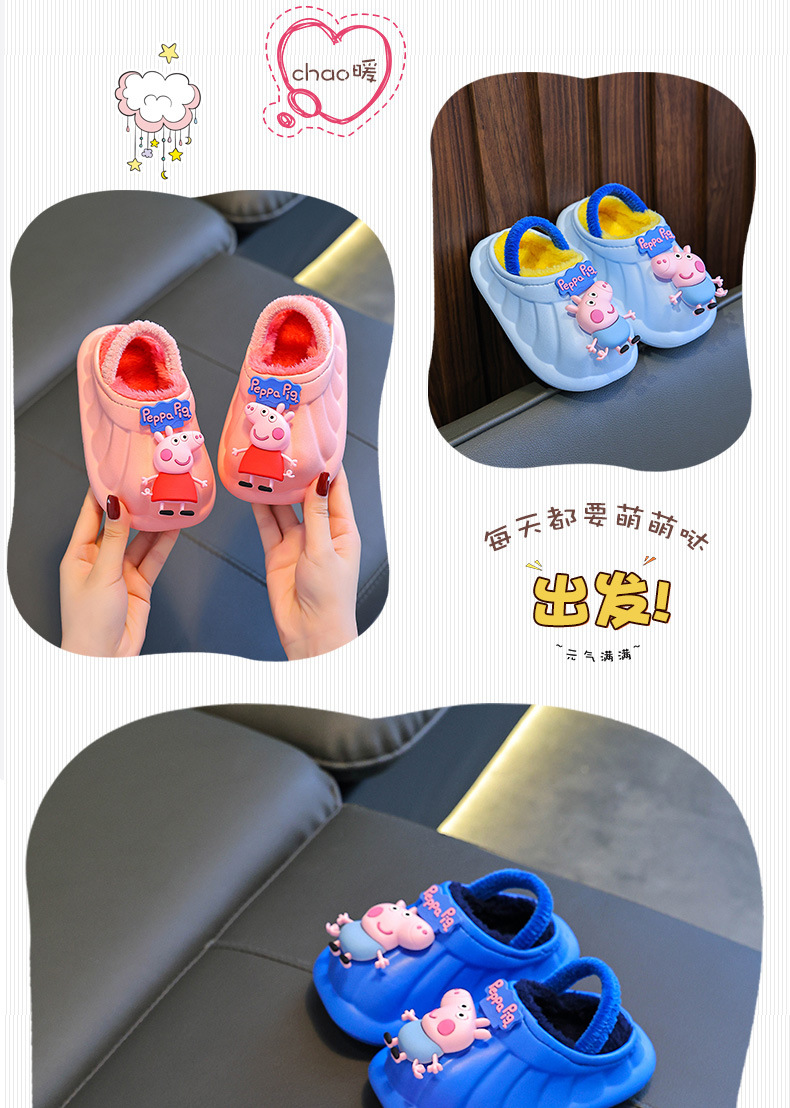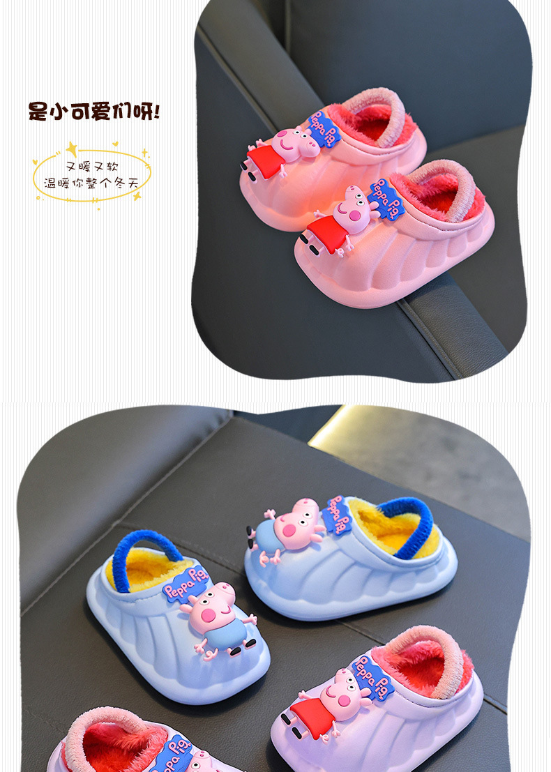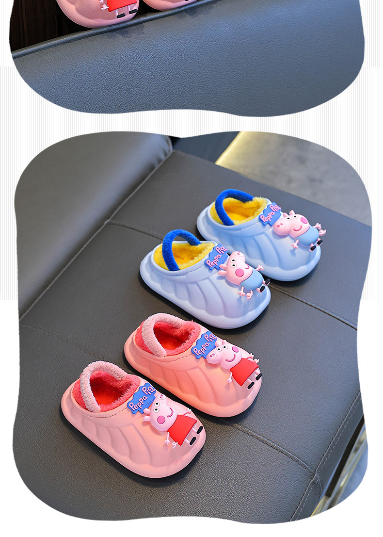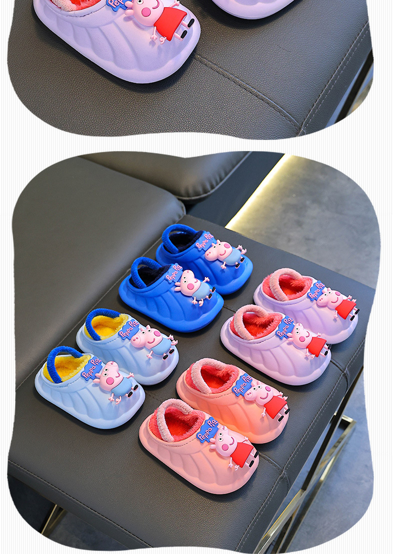 Piglet Page invierno zapatillas de algodón para niños, hombres y mujeres, EVA antideslizante correa elástica, calentamiento y peluche para bebés y niños pequeños.