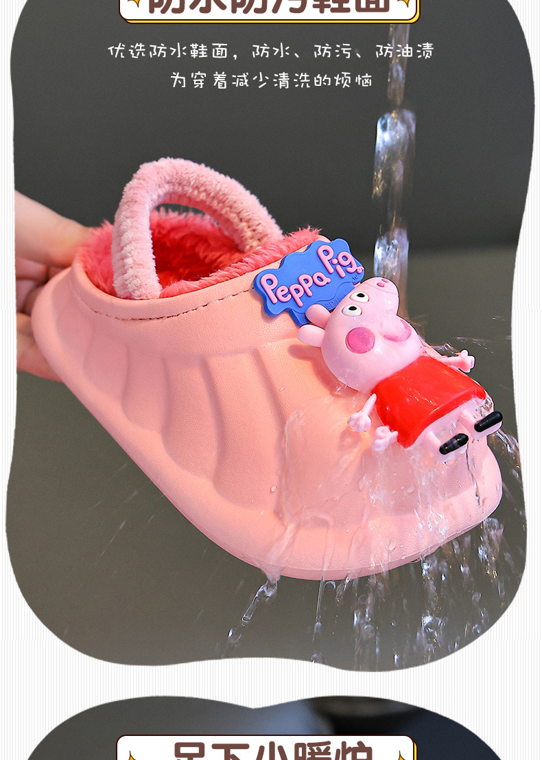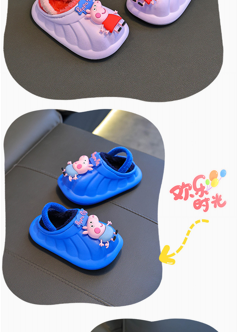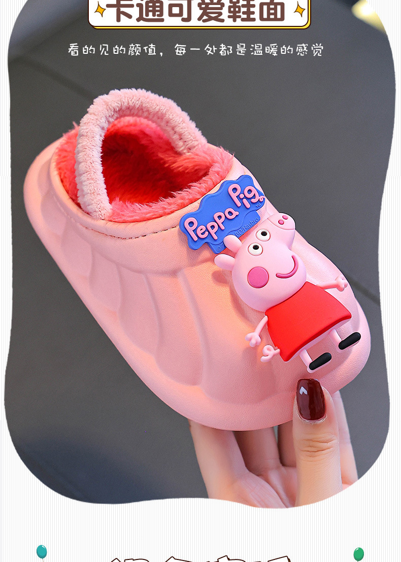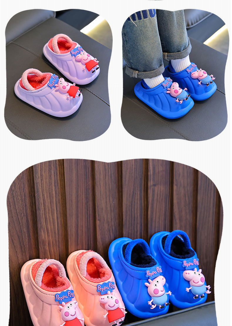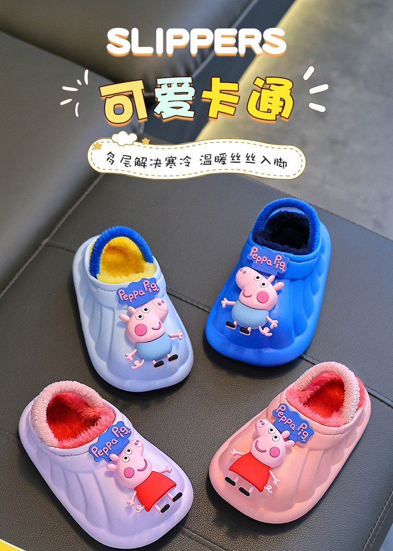 Piglet Page invierno zapatillas de algodón para niños, hombres y mujeres, EVA antideslizante correa elástica, calentamiento y peluche para bebés y niños pequeños.