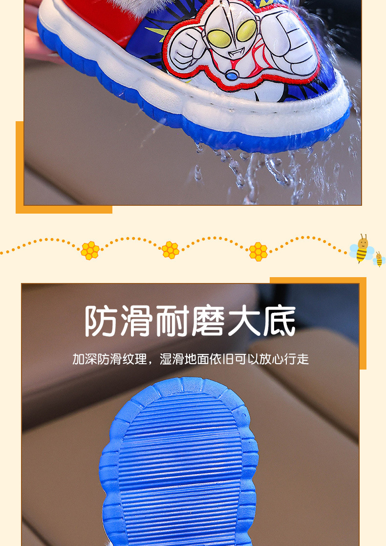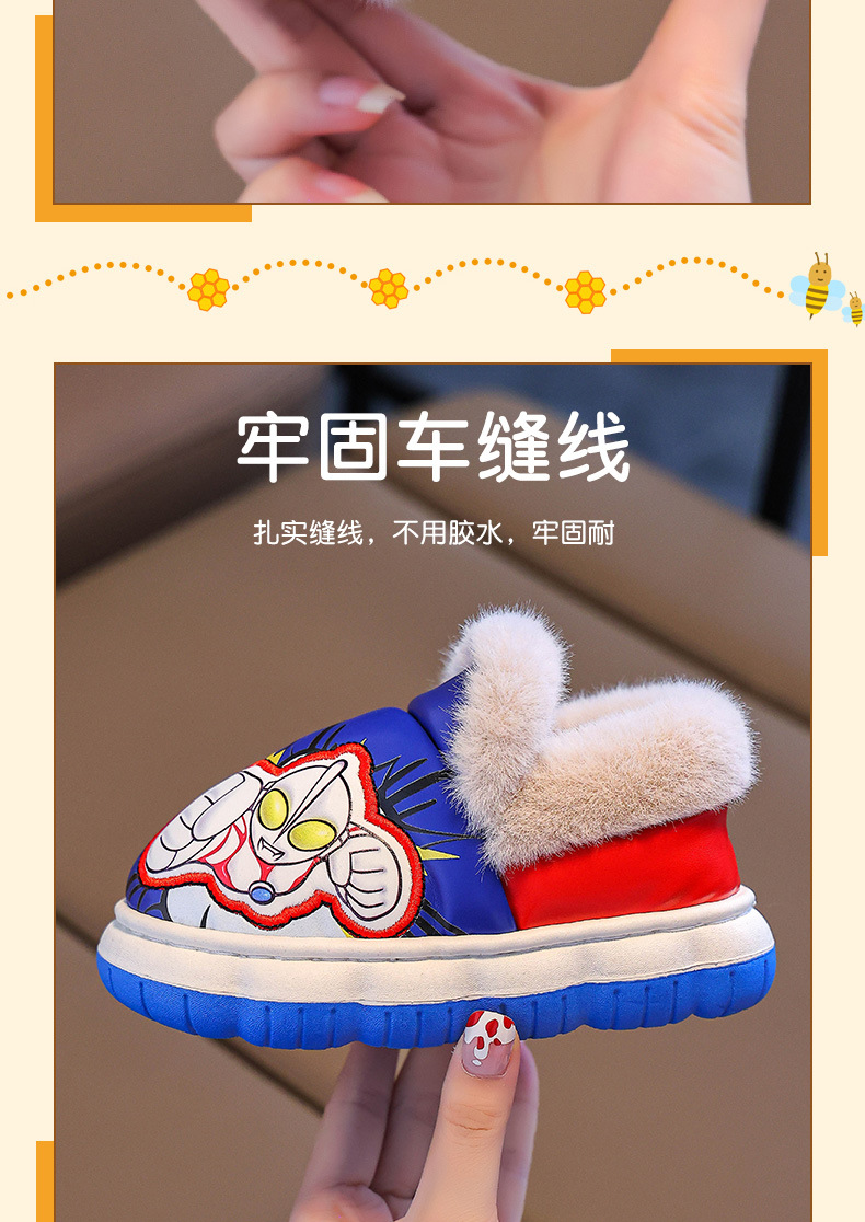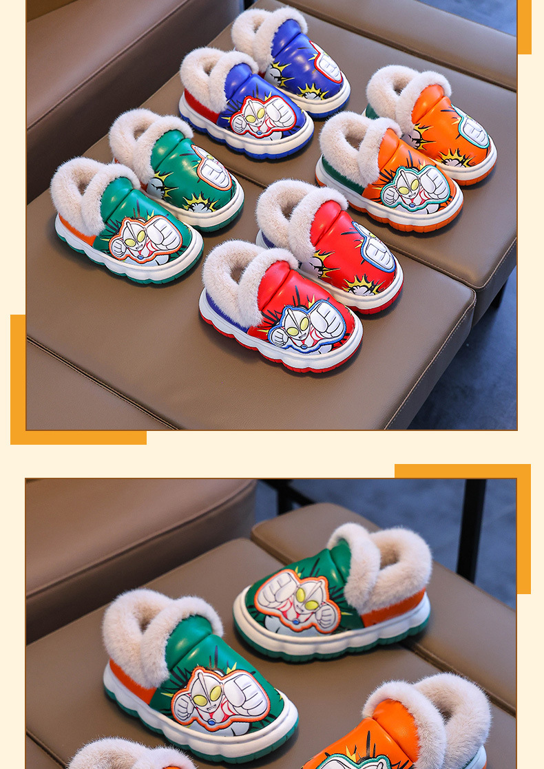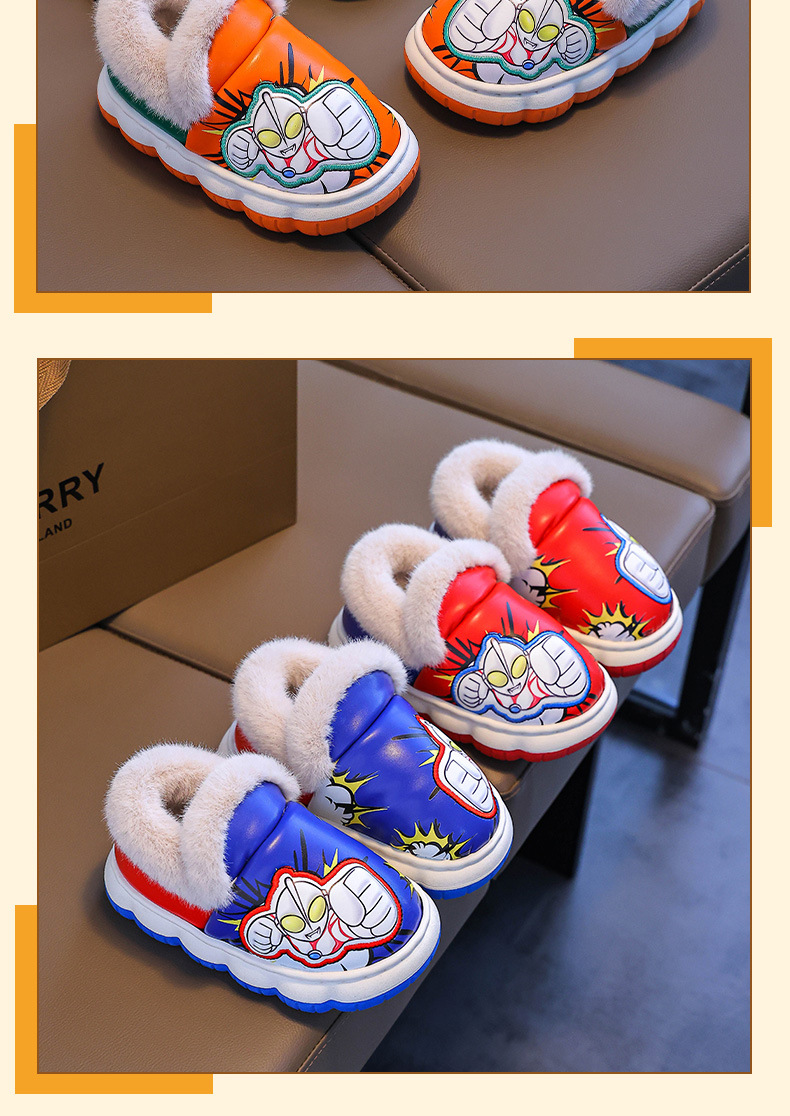 Auténtica bolsa de invierno para niños, zapatillas de algodón cálidas y peluche PU impermeable para niños zapatos de algodón caseros