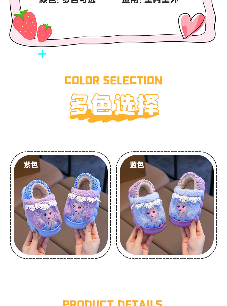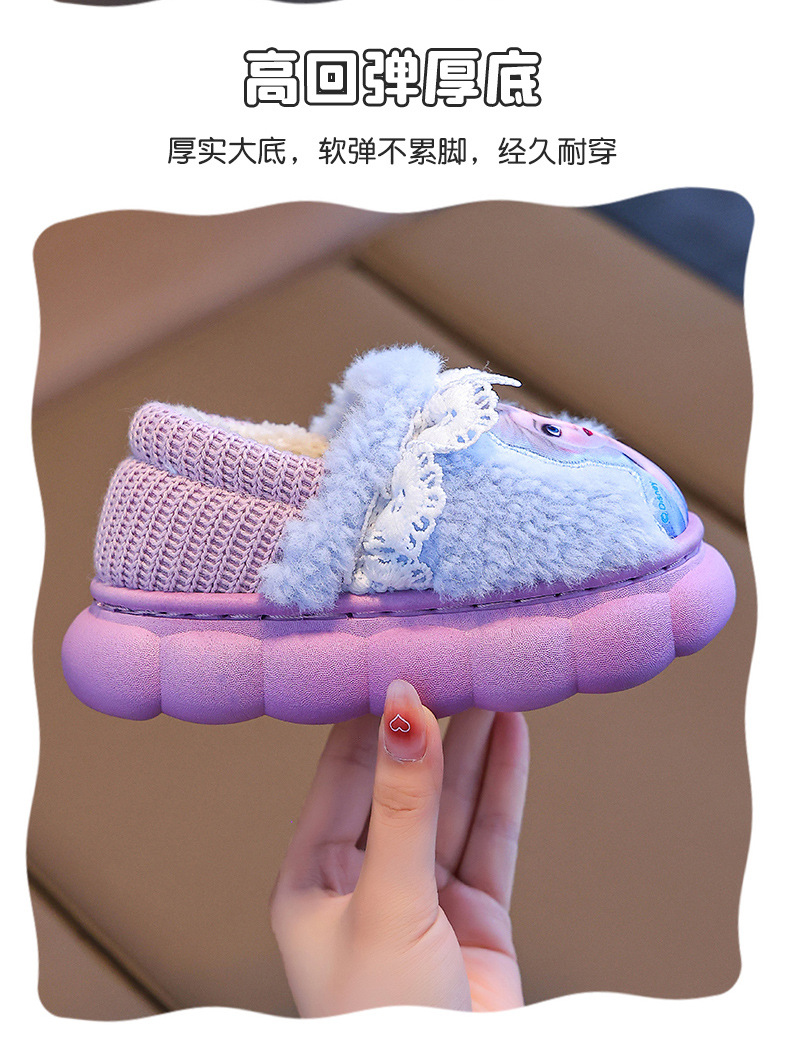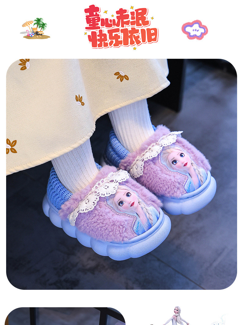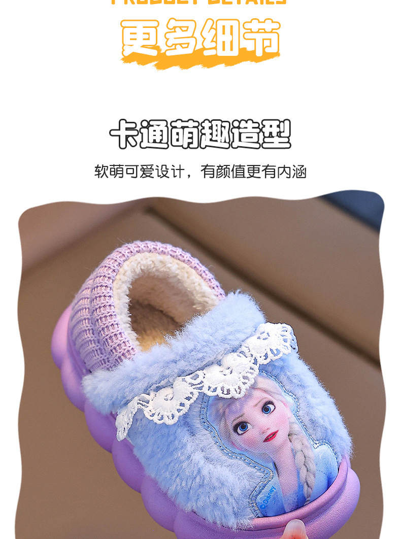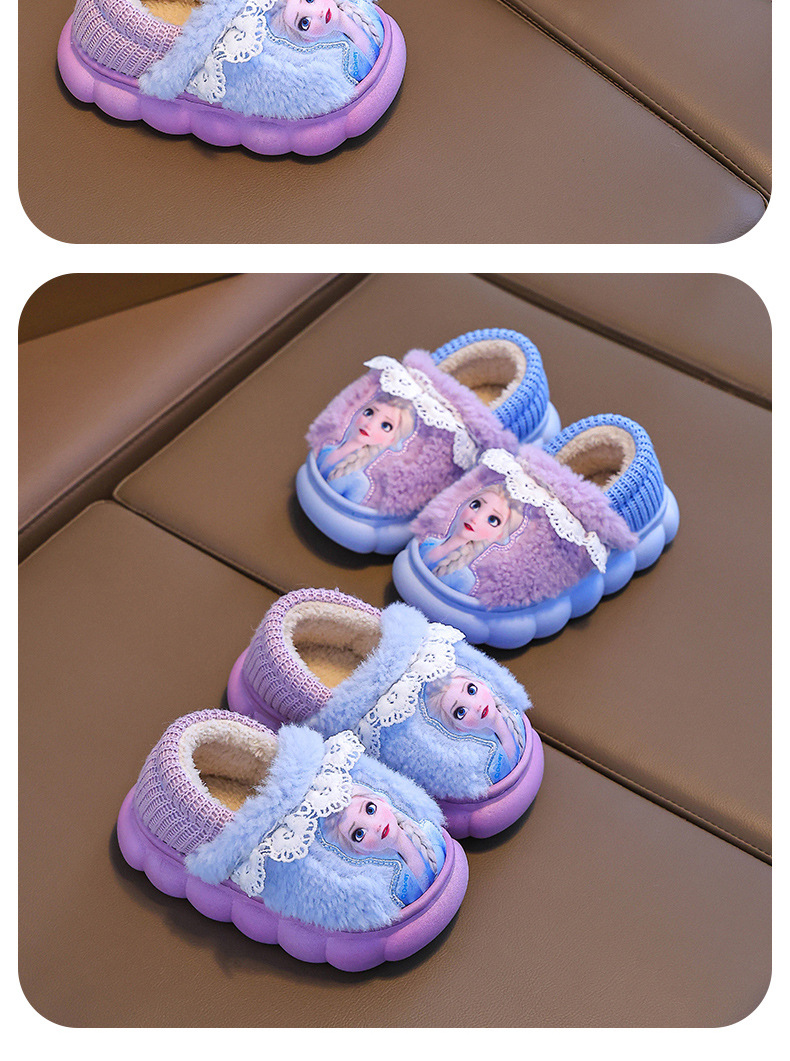 Bolsos de invierno de niñas zapatos de algodón cálidos peluche casa princesa Elsa zapatillas de algodón de espesor para niños