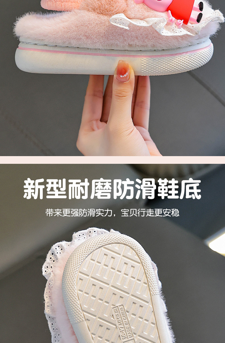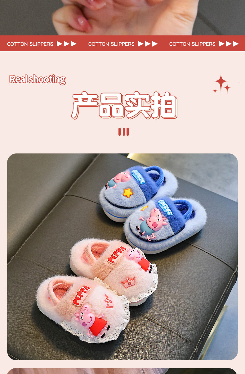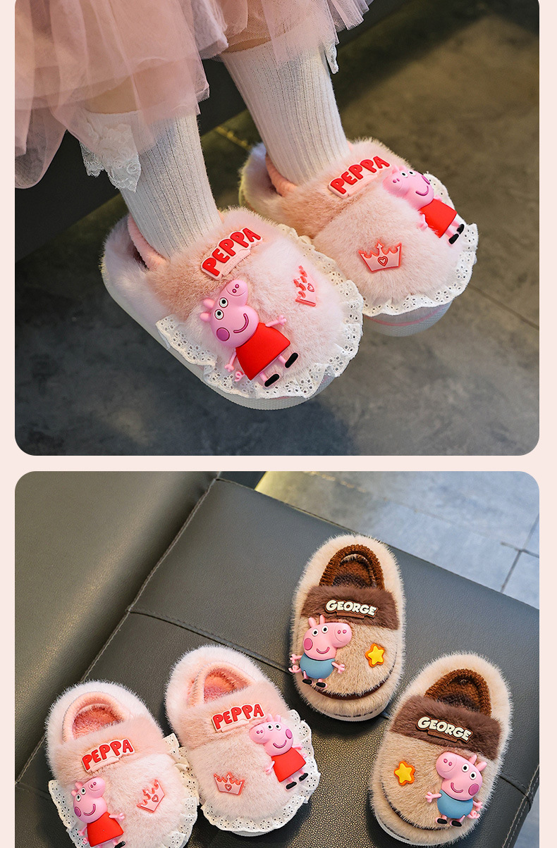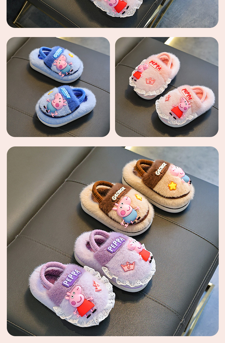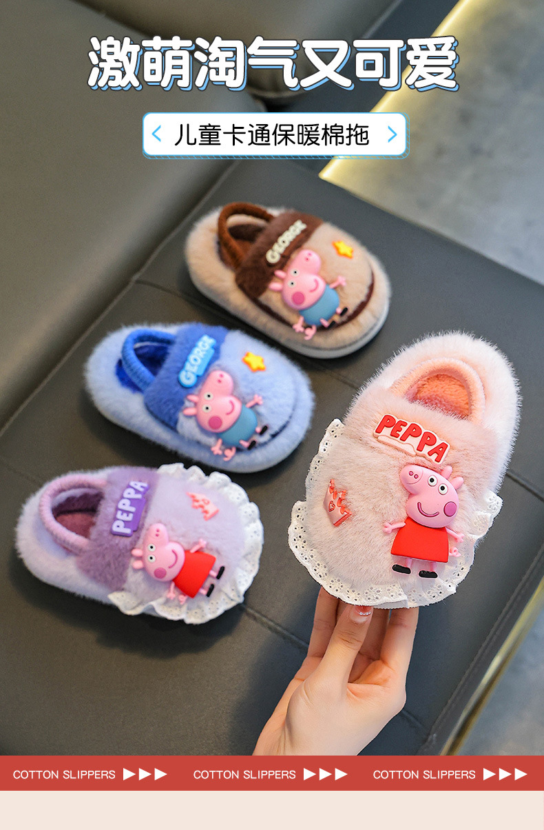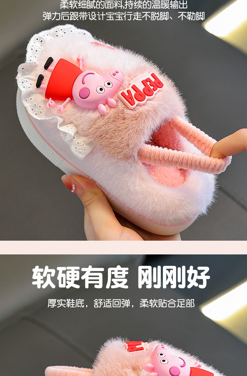 Piglet Page otoño y invierno zapatillas de algodón para niños, niños y niñas, calentamiento y pelusa para bebés y niños pequeños, zapatos de algodón con cinta elástica