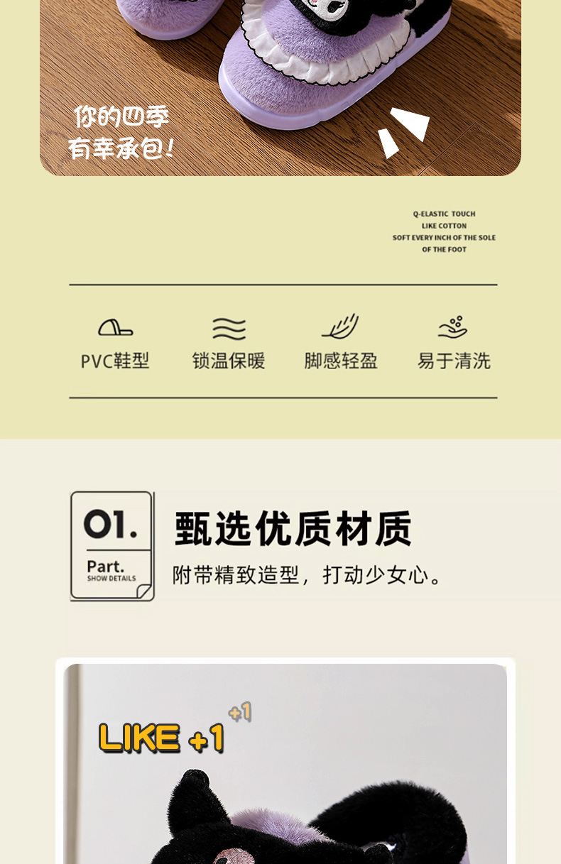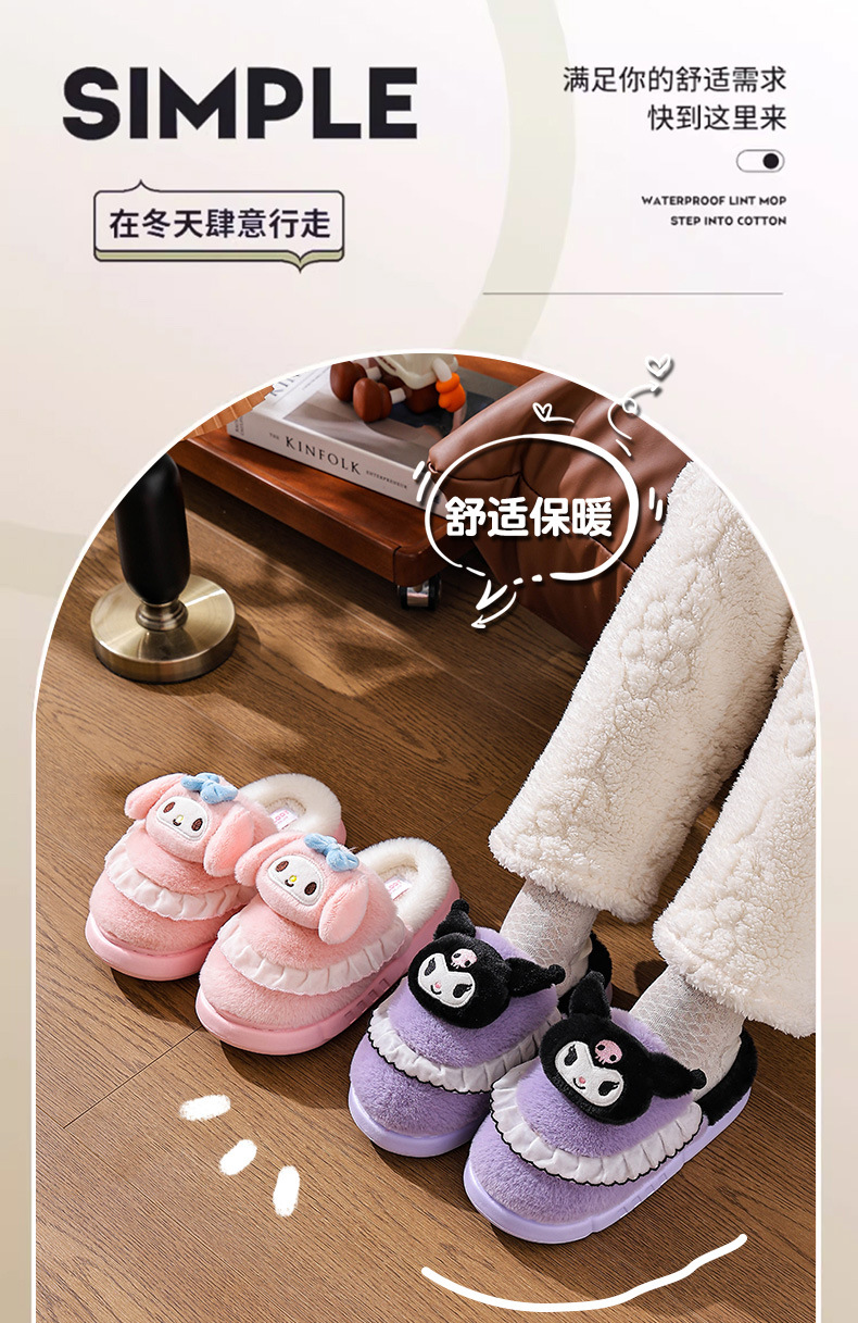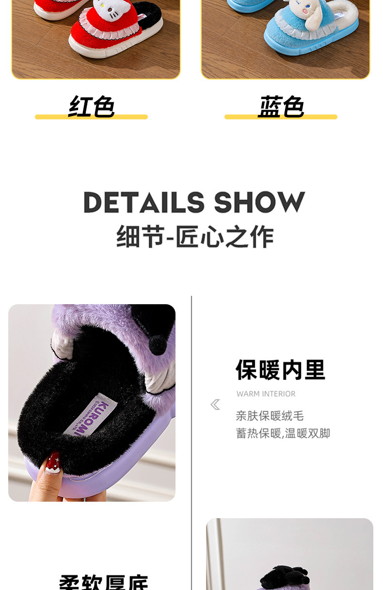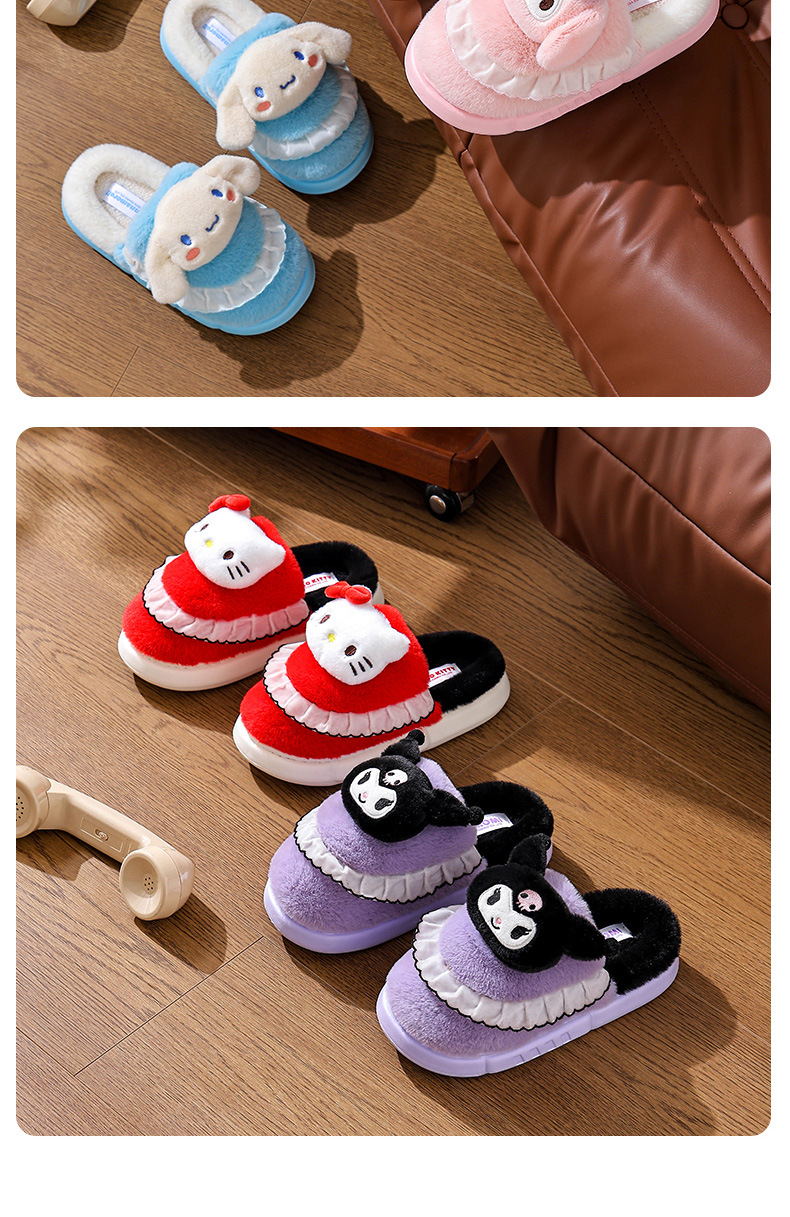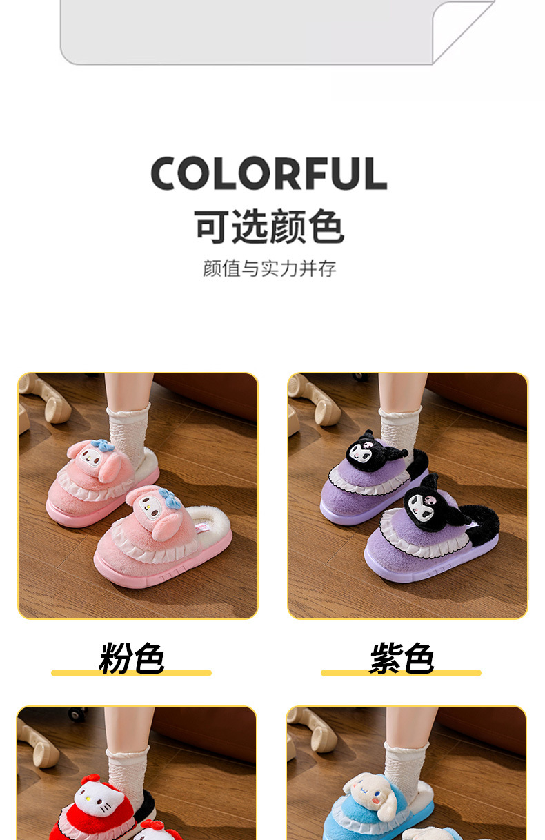 | Color | Zapatillas Colomi púrpura, zapatillas Melody rosa, zapatillas de perro de orejas azules, zapatillas de Kitty rojas, Colomi púrpura (talón de bolsa), Melody rosa (talón de bolsa), perro de orejas azules (talón de bolsa), Kitty roja (talón de bolsa) |
