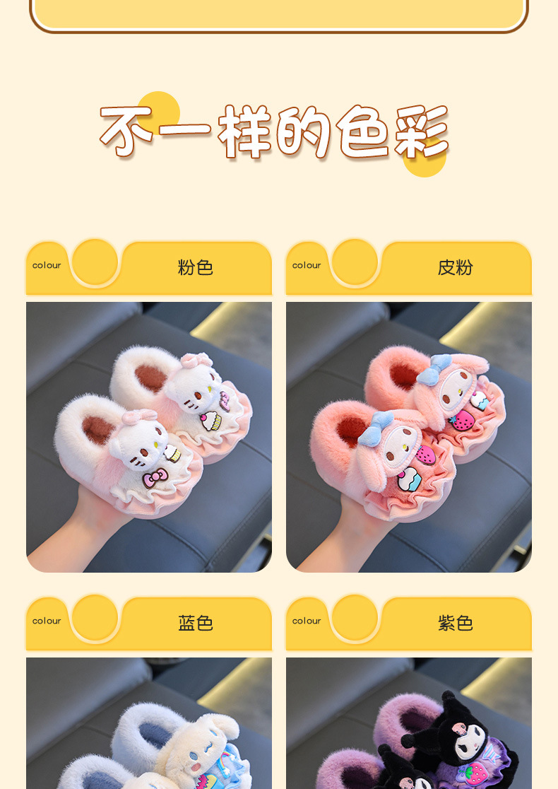 | Color | Colomi púrpura (talón), melón rojo Melody (talón), perro de orejas azules (talón), Kitty rosa pálido (talón), zapatillas Colomi púrpura, zapatillas Melody rojo Melody, zapatillas de perro de orejas azules, zapatillas Kitty rosa pálido |