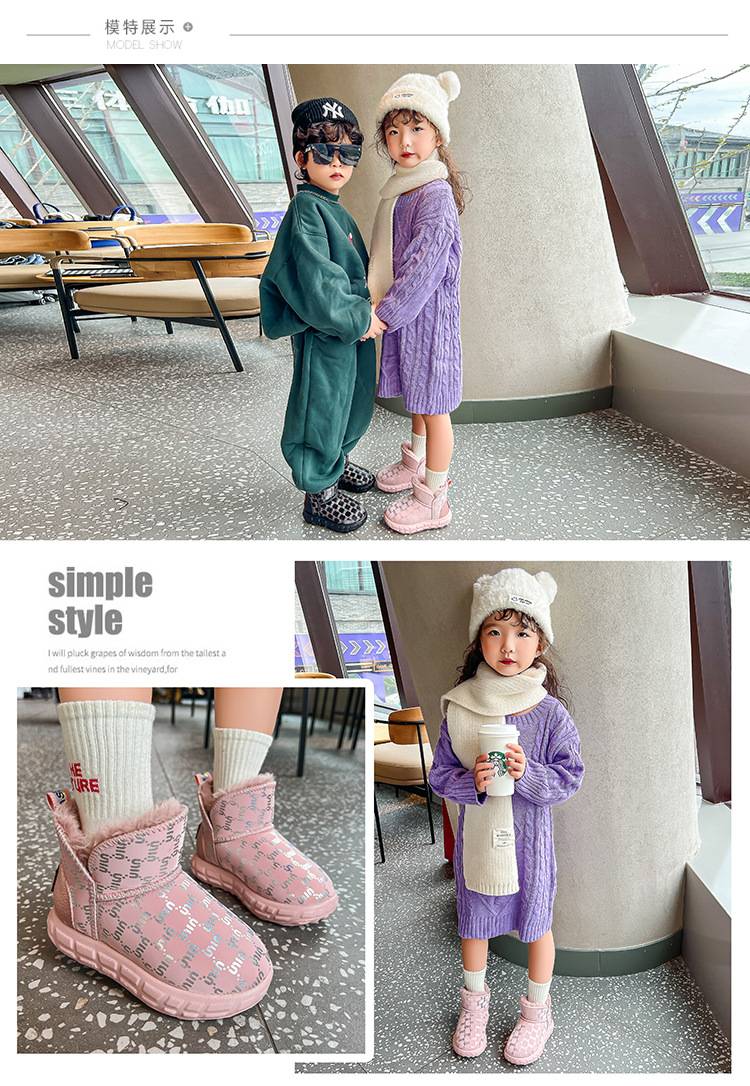 Botas de nieve para niños 2024 invierno nuevos zapatos para niños zapatos de algodón grandes zapatos de algodón para niños más zapatos de lana para niñas