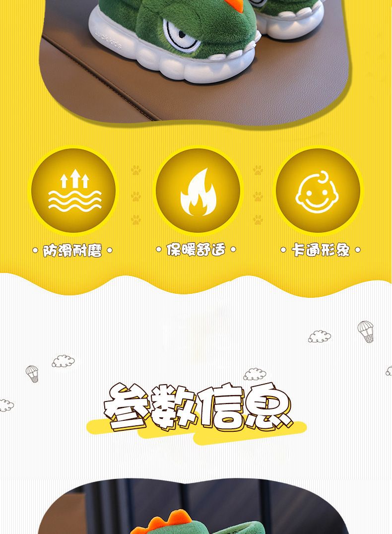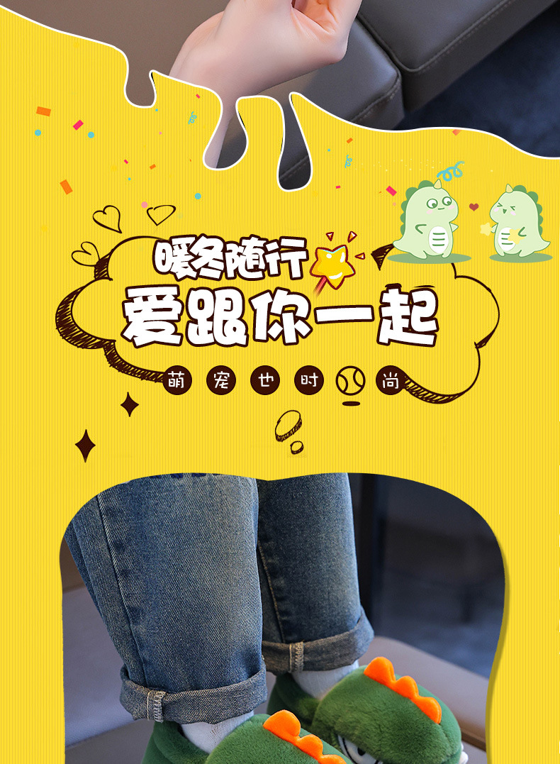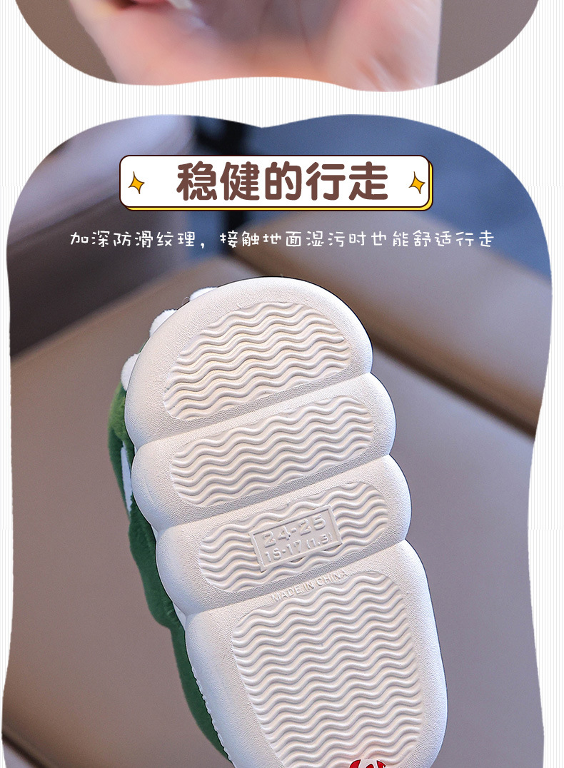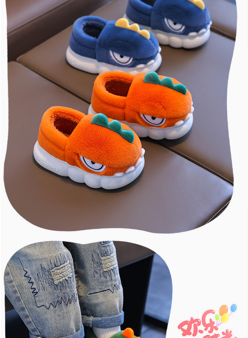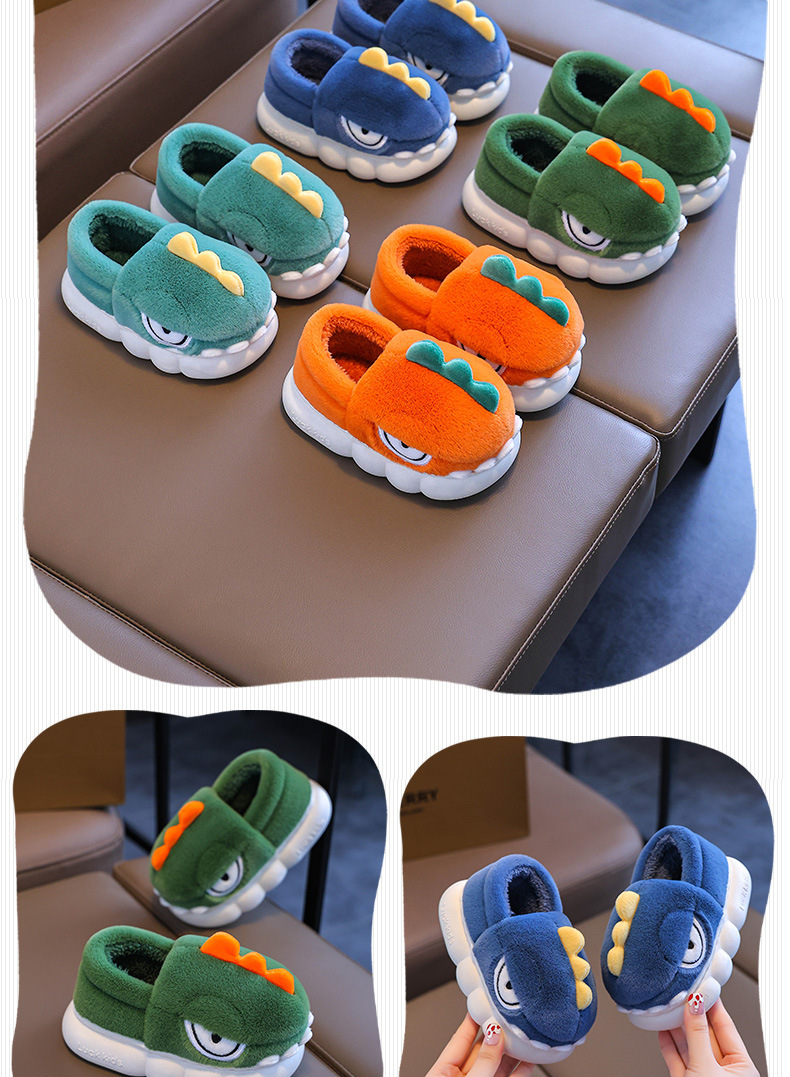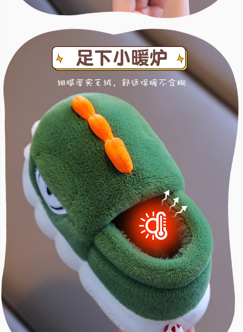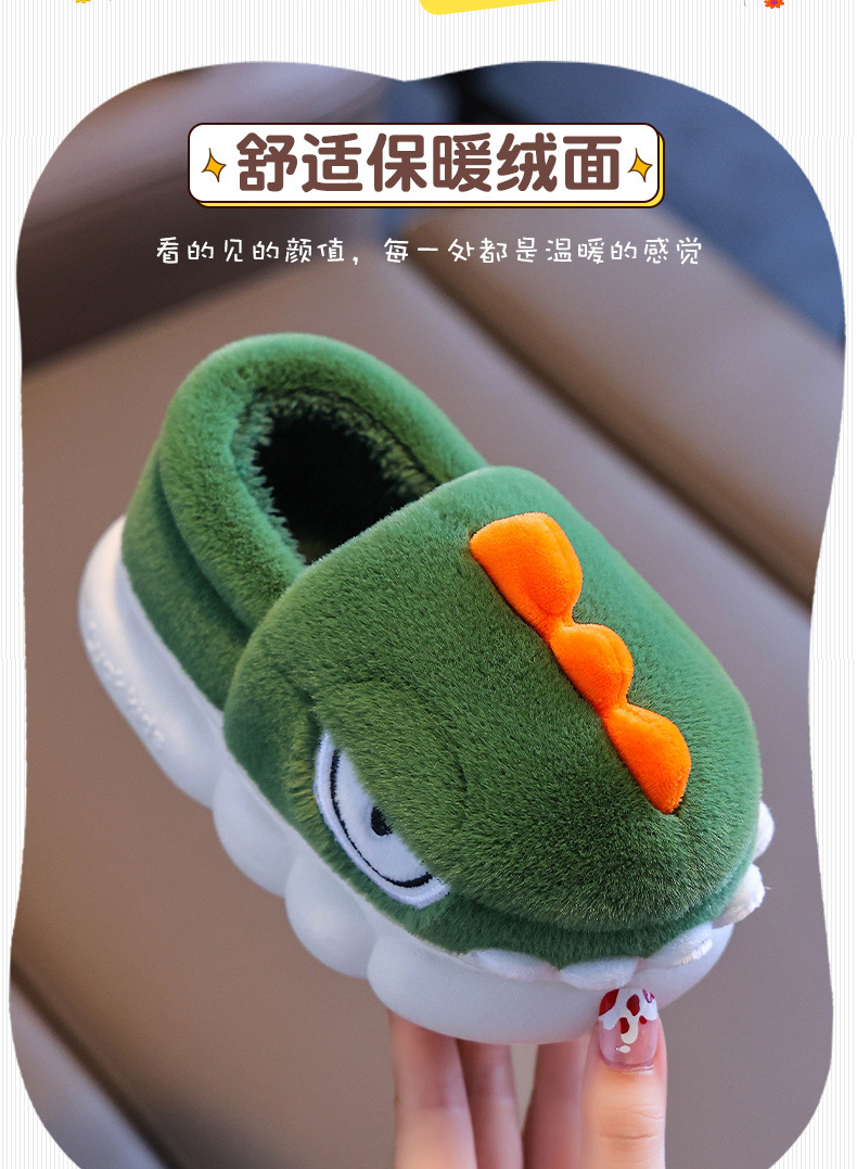 Otoño y invierno zapatillas de algodón para niños dinosaurios cálidos y bolsas de pelusa con zapatos de algodón antideslizantes para niños caseros