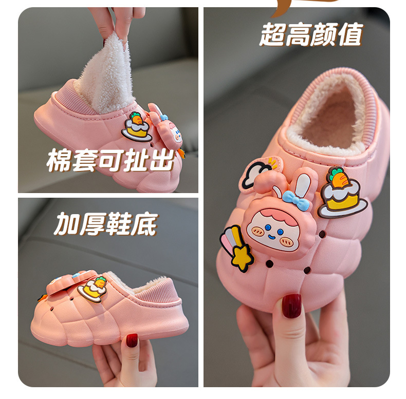 Zapatillas de algodón para niños de invierno niños y niñas bolsa de tacón forrado de lana caliente zapatos de algodón antideslizantes impermeables para niños