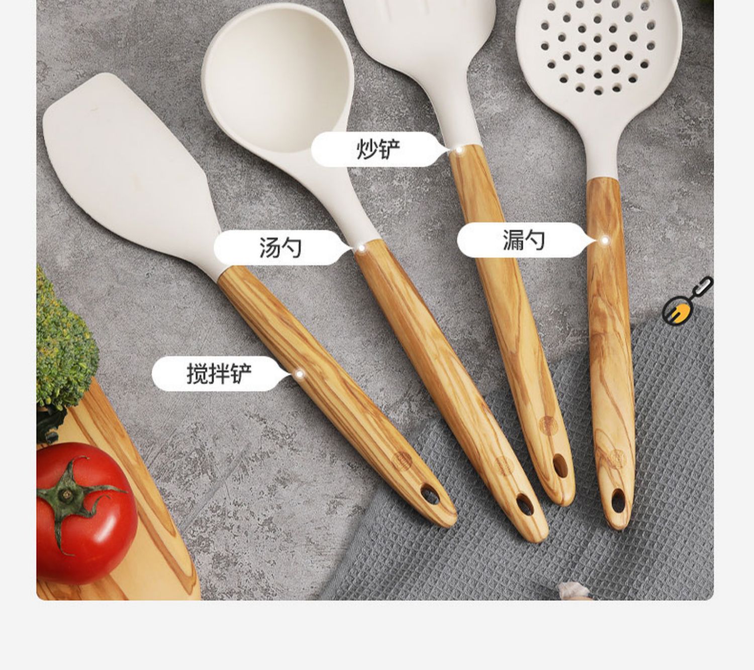 Dintake set de cocina de alta temperatura resistente a la comida para utensilios de cocina domésticos, pala para fritar verduras, pala especial para olla antiadherente