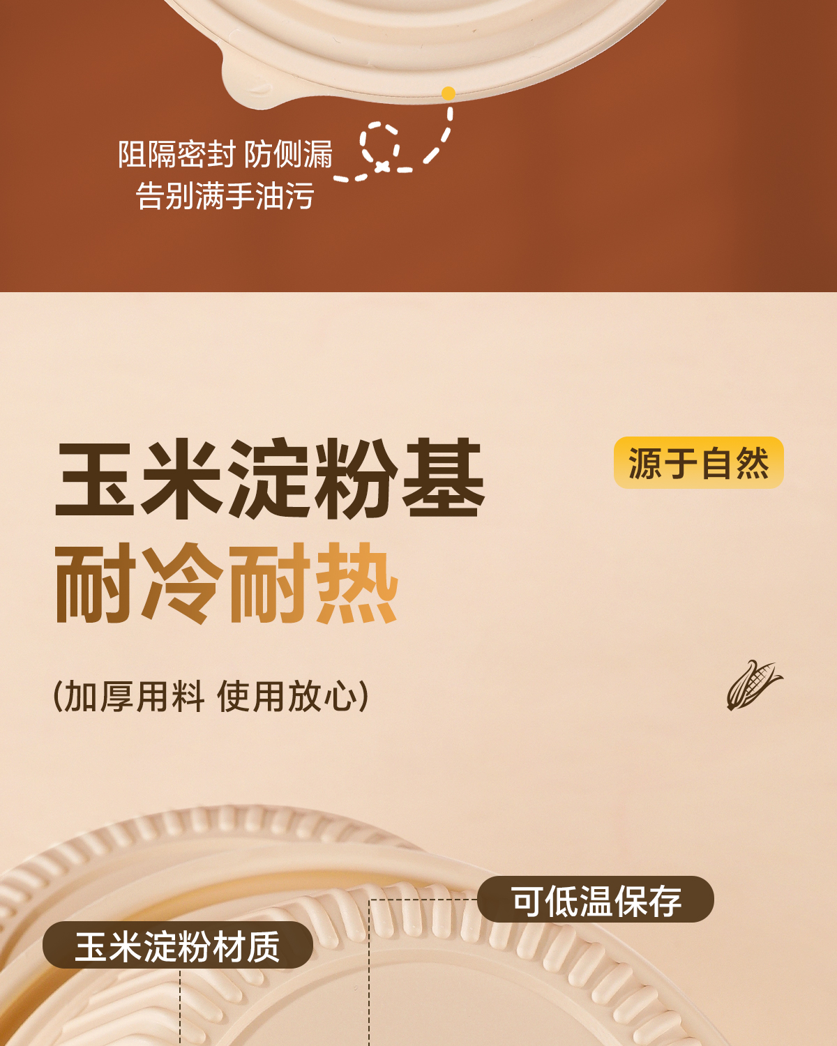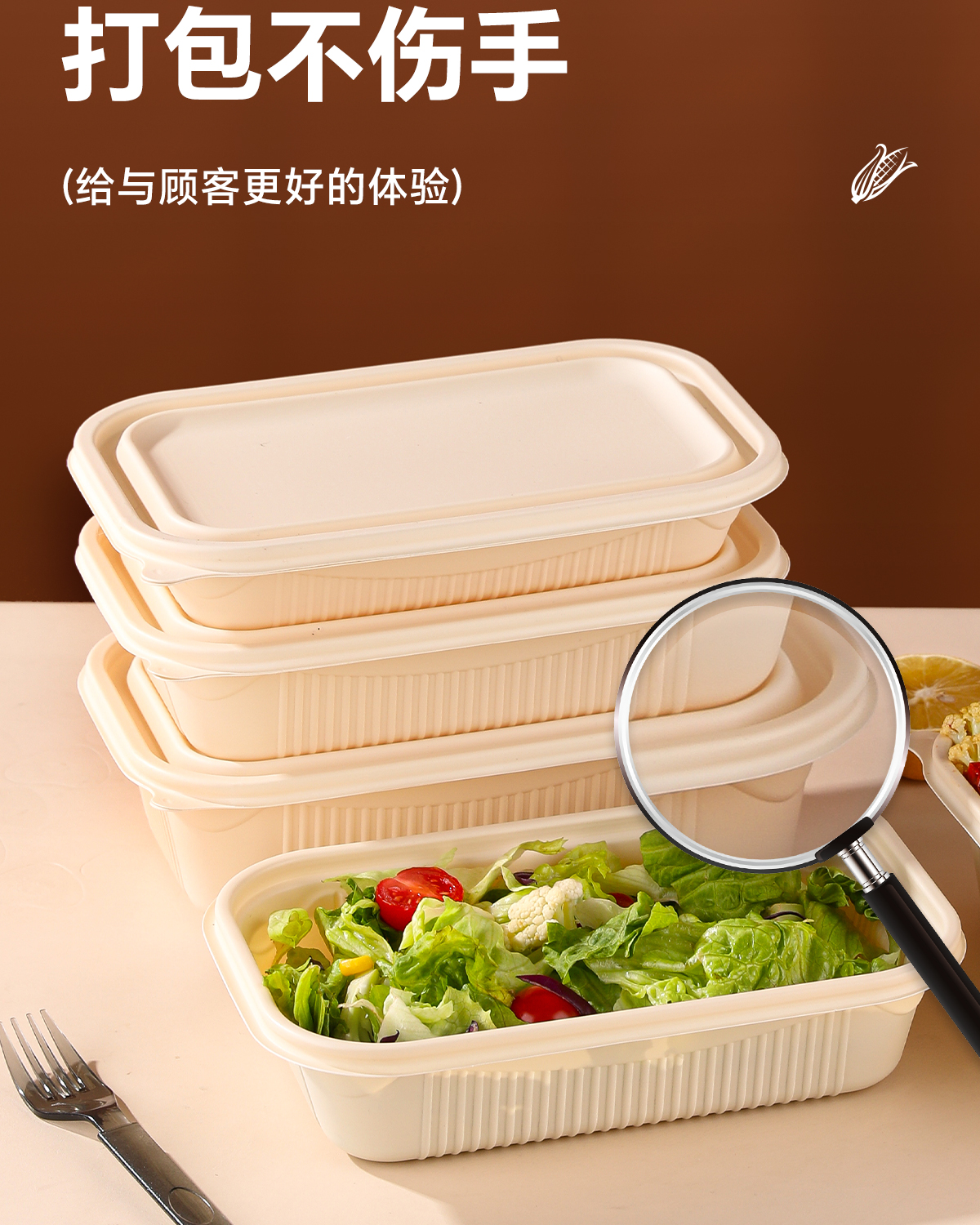 Caja de almidón de maíz, caja de comida doméstica de grado alimenticio, cubiertos de picnic calentados por microondas, caja de almuerzo desechable