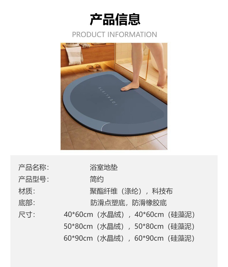 Transfronterizo simple almohadilla de suelo de baño de barro de diatomeas resistente al deslizamiento absorción de agua almohadilla de inodoro puerta de inodoro almohadilla de pie antisucia