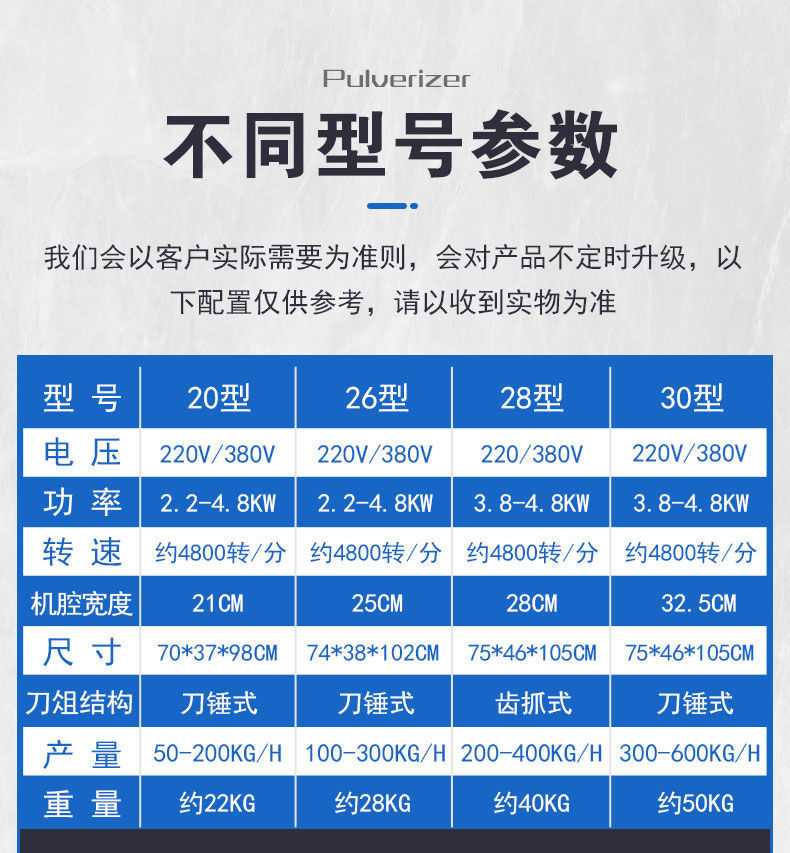 | Especificaciones del producto | Actualización 26 modelo de garra de dientes de acero - sin motor, actualización 26 modelo de garra de dientes de acero - motor de alta potencia (220v electricidad doméstica), actualización 26 modelo de garra de dientes de acero - motor de cobre de alta potencia (220v electricidad doméstica), actualización 26 modelo de garra de dientes de acero - motor de cobre puro de alta potencia en tres fases (380v electricidad comercial), motor principal de garra de 28 dientes - motor de cobre de alta potencia (220v electricidad doméstica), motor de garra de 28 dientes - motor de cobre de alta potencia (220v electricidad doméstica), motor principal de garra de 28 dientes - motor de cobre de alta potencia en tres fases (380v electricidad comercial), motor principal de 21 piezas de martillo - motor sin cinturón, motor de 21 piezas de martillo - motor principal - motor de martillo de alta potencia (220v electricidad doméstica), 21 piezas de martillo eléctrico motor de cobre de alta potencia (electricidad doméstica de 220v), motor principal de 26 piezas de martillo - sin motor, motor principal de 26 piezas de martillo - motor de alta potencia (electricidad doméstica de 220v), motor principal de 26 piezas de martillo - motor de cobre de alta potencia (220v) Electricidad doméstica, 26 motores de cobre puro de alta potencia en tres fases (380v electricidad comercial), 30 motores de cobre puro de alta potencia sin motor, 30 motores de cobre de alta potencia (220v electricidad doméstica), 30 motores de cobre de alta potencia (220v electricidad doméstica), 30 motores de cobre de alta potencia (220v electricidad doméstica), 30 motores de cobre puro de alta potencia En tres fases (380v electricidad comercial), 150 motores de cobre puro de alta potencia (380v electricidad comercial), 150 motores de molienda [doble uso seco y húmedo] - motores de alta potencia (220v electricidad doméstica), 150 motores de cobre seco y húmedo] - motores de cobre de alta potencia (220v electricidad doméstica), 150 motores de cobre seco y húmedo (220v electricidad doméstica), 150 cubos de molienda (sin cabeza)- sin motor |