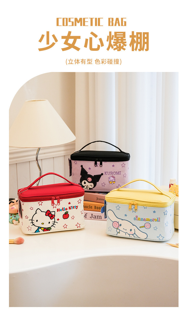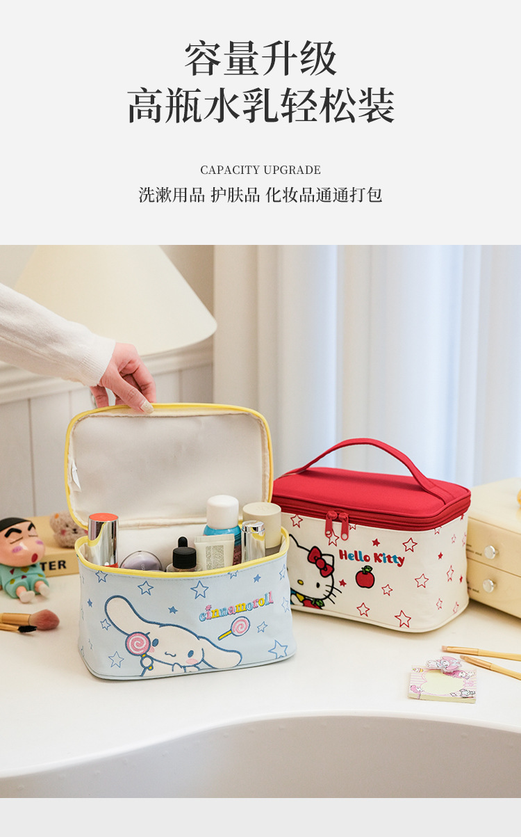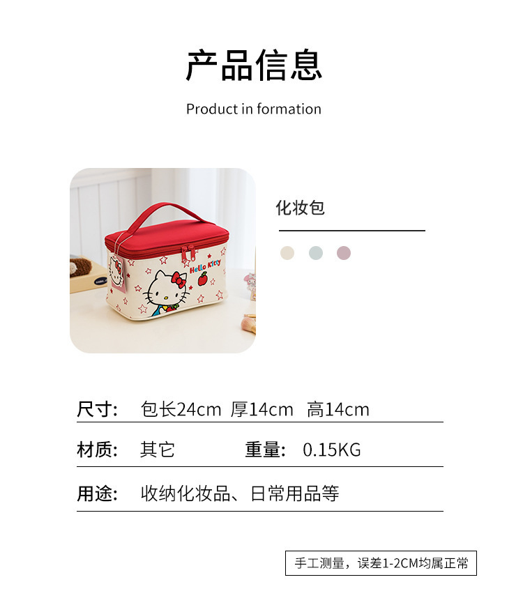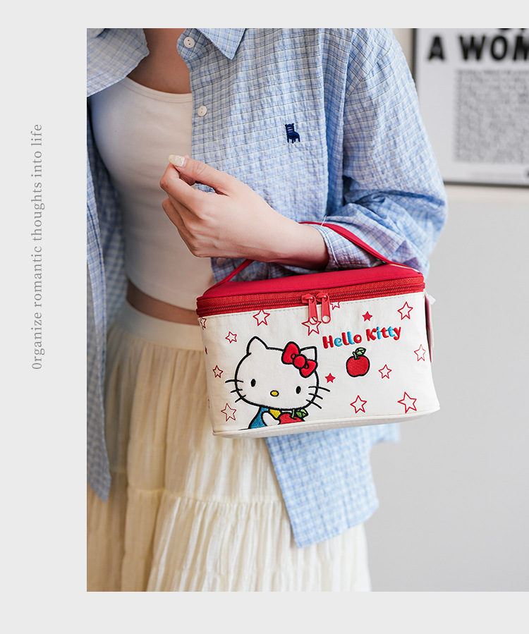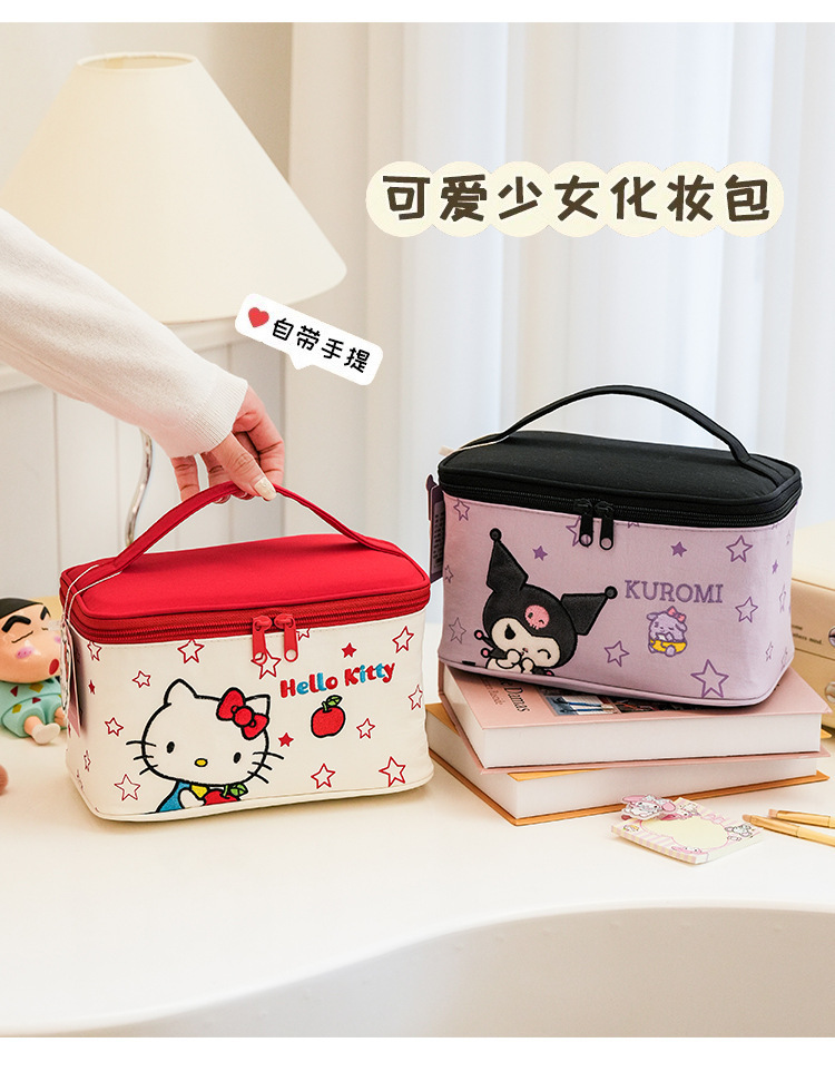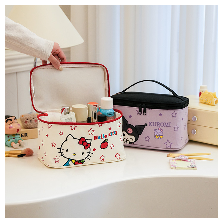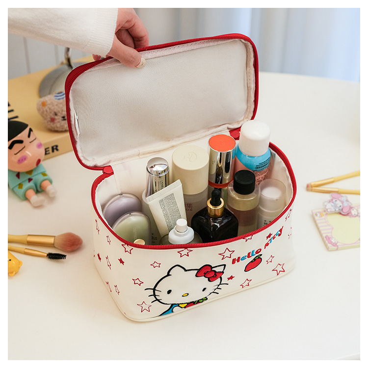 Sanrio Kitty Square Bags de maquillaje mujeres bordadas portátiles de gran capacidad de viaje lindas bolsas de almacenamiento bolsas de lavado