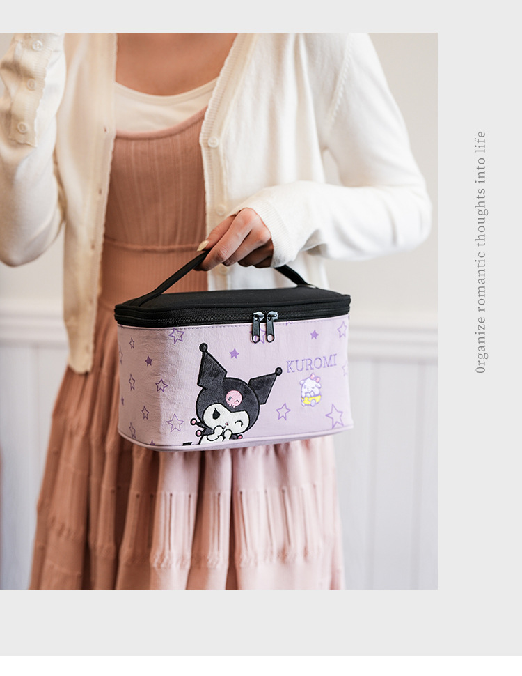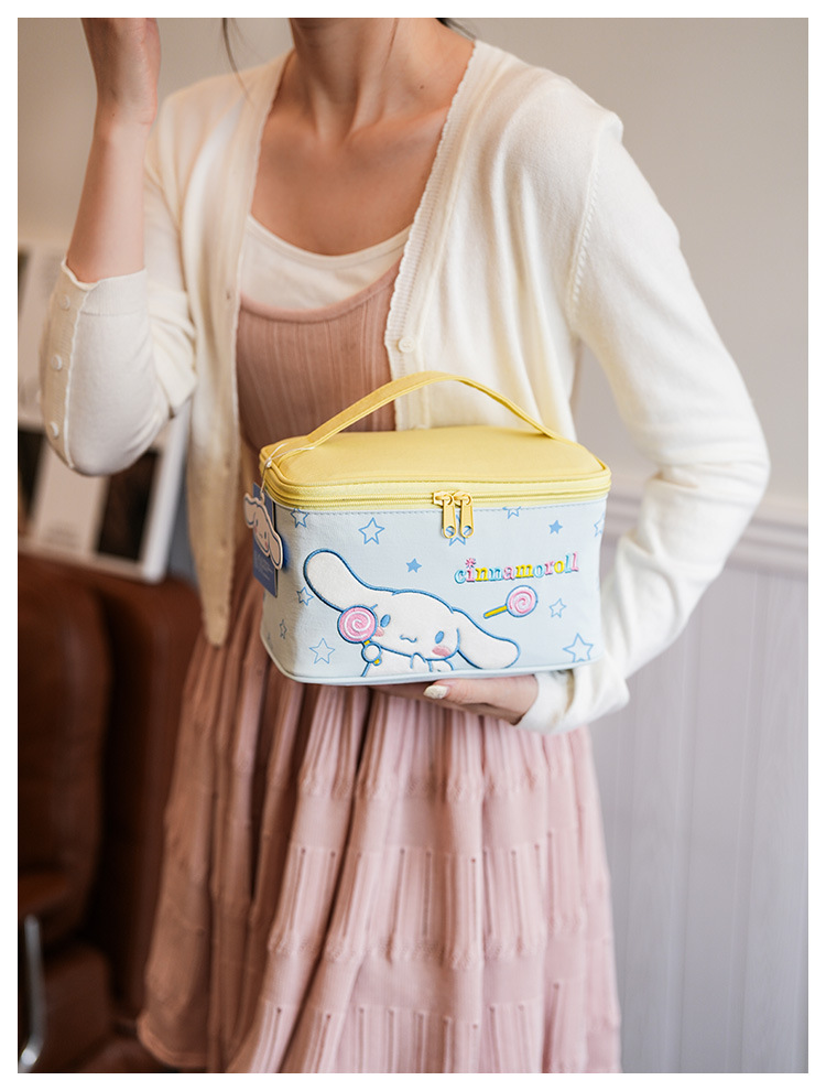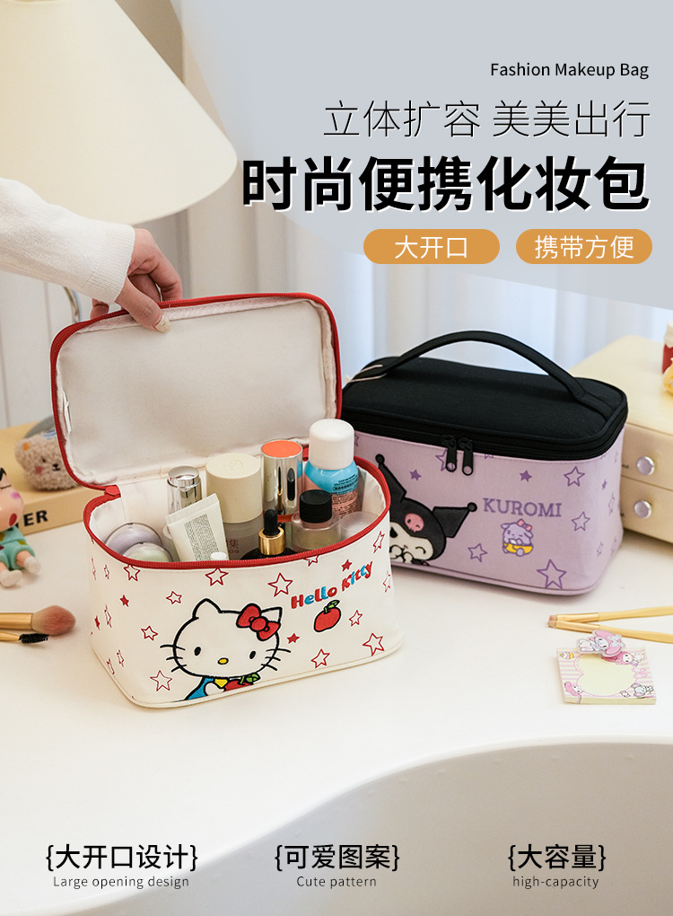 Sanliogou estilo tridimensional lindo cartón bordado bolsas de maquillaje de gran capacidad de alta belleza bolsa de almacenamiento portátil de viaje