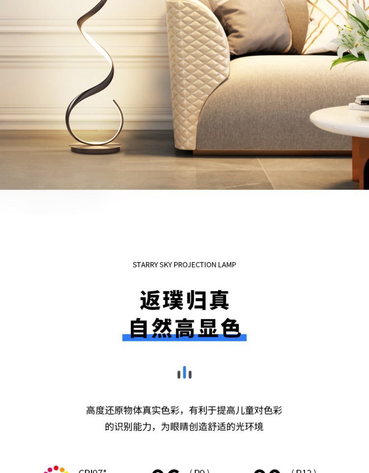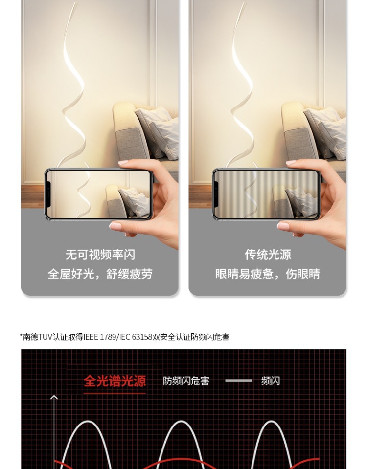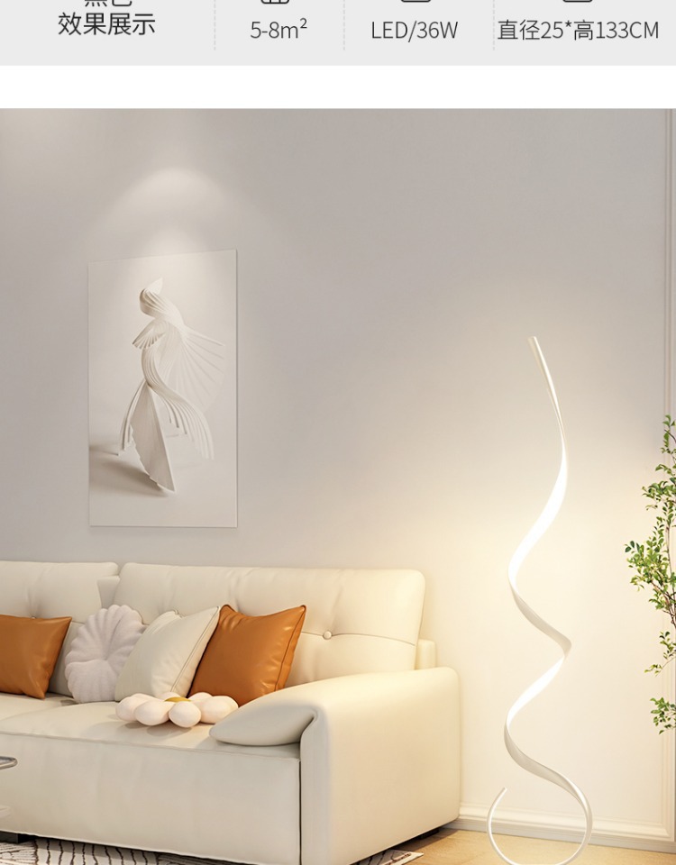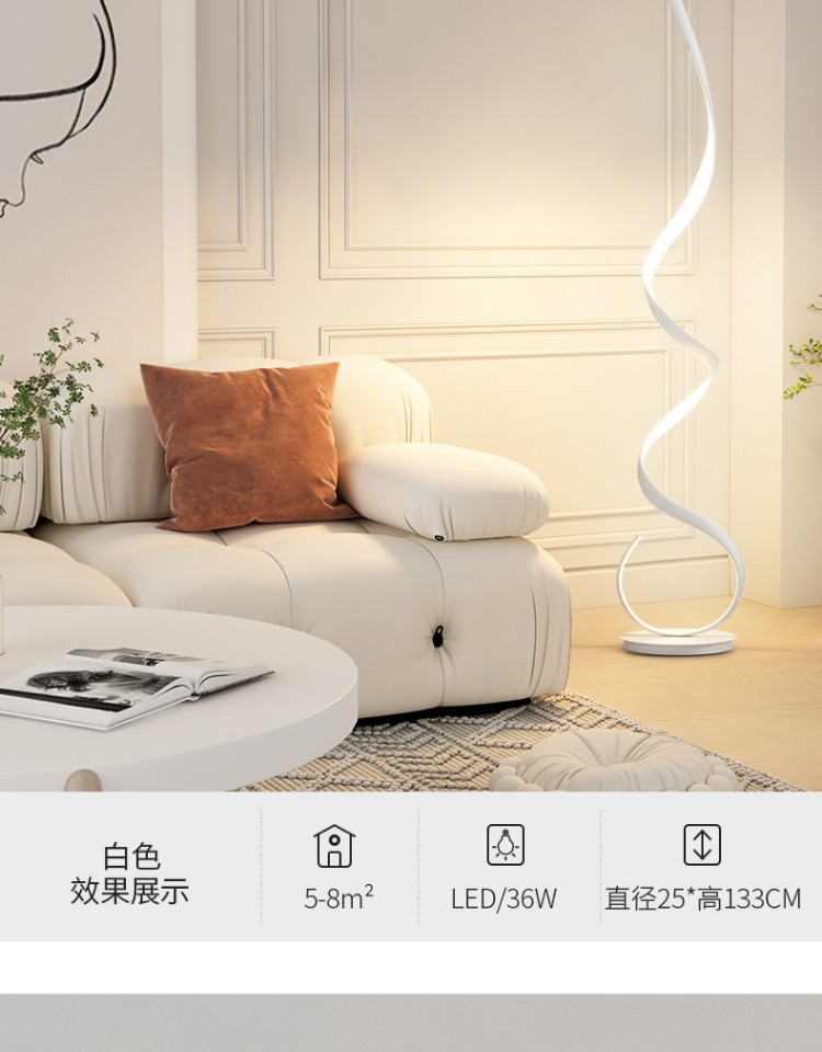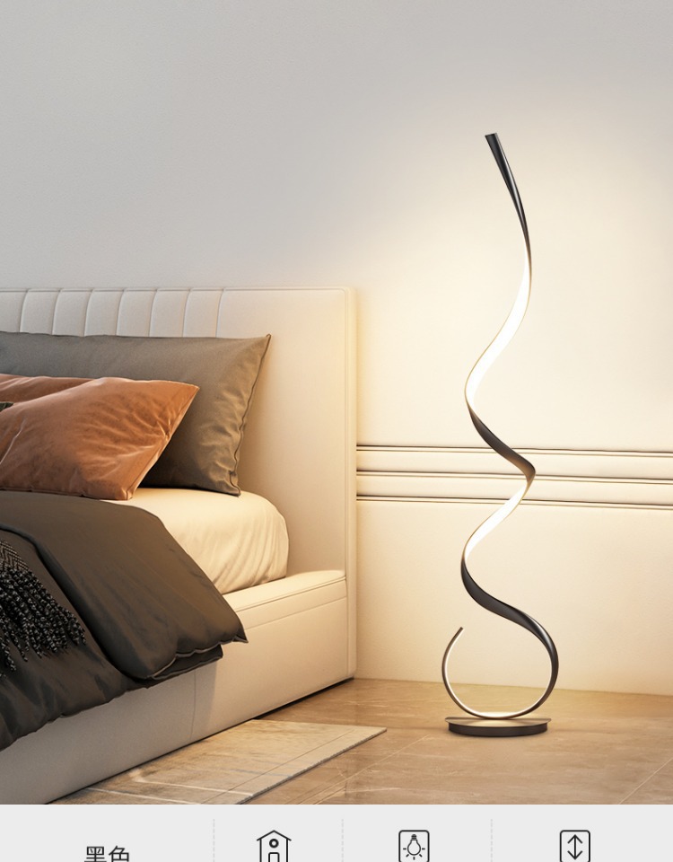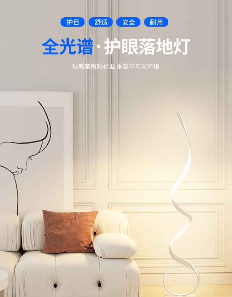Lámpara de pie, sentido de diseño minimalista, sala de estar nórdica, sofá, esquina de red roja, atmósfera ondulada, luz lineal, espectro completo
