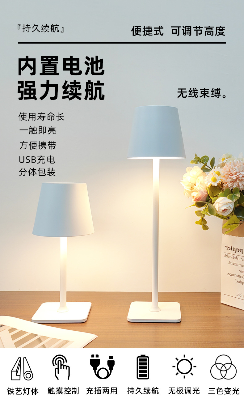 Lámpara de escritorio, sencilla y moderna, estilo comercio electrónico, lámpara de escritorio decorativa, lámpara de escritorio recargable, lámpara de ambiente con textura metálica, lámpara de escritorio creativa