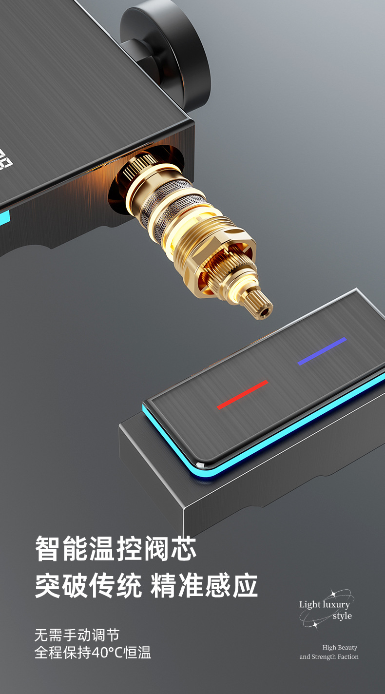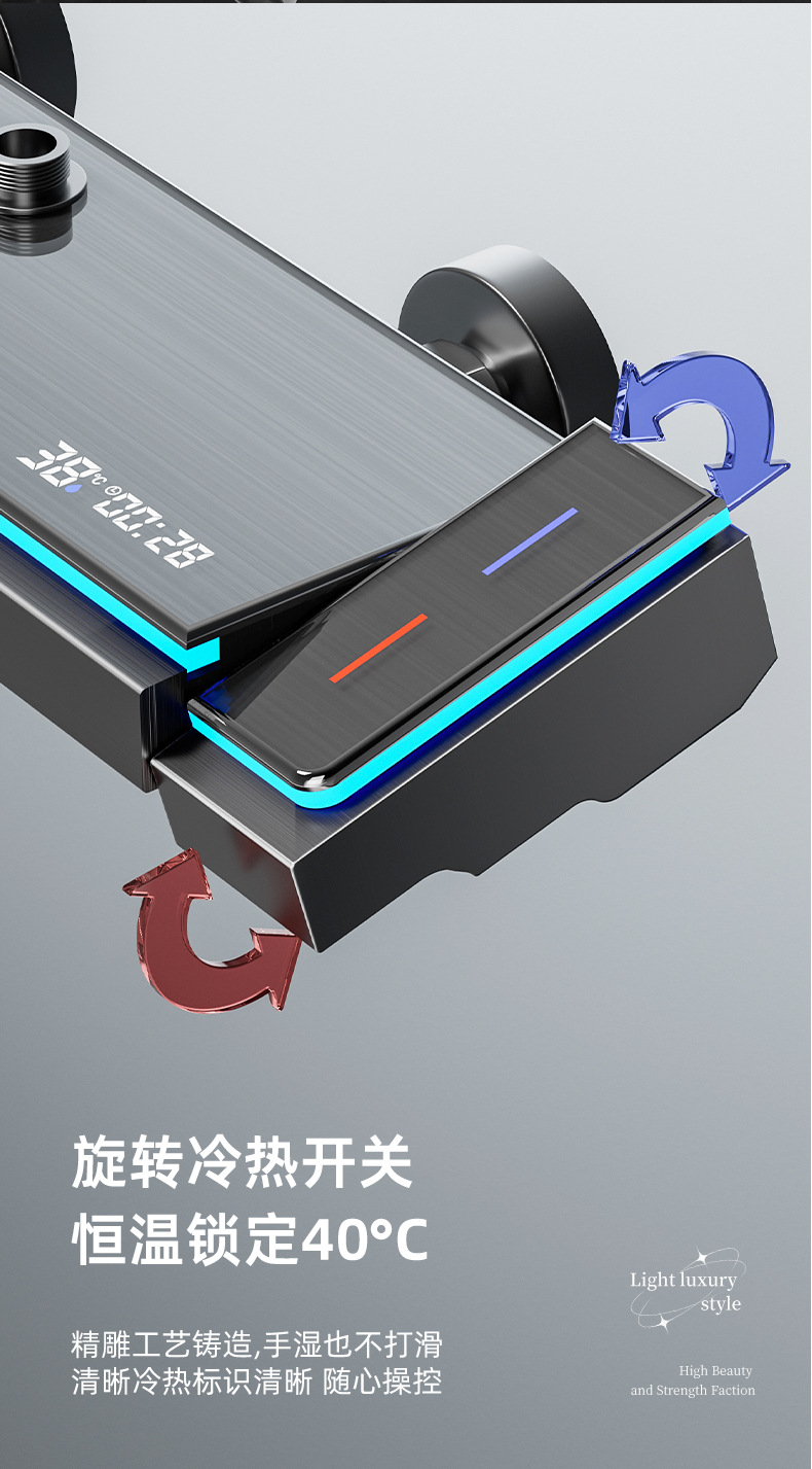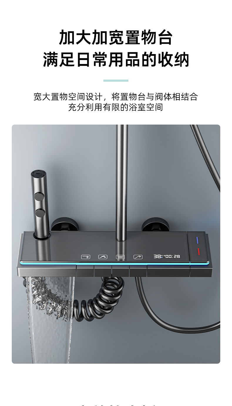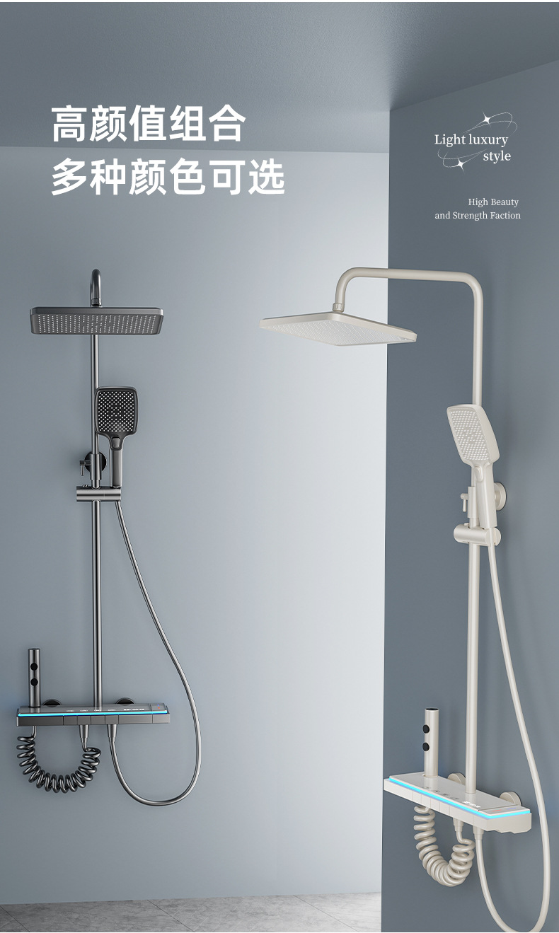 Juego completo de cabezal de ducha presurizado con pantalla digital tipo tecla de piano color gris metalizado, sistema de ducha multifuncional resistente al desgaste con temperatura constante