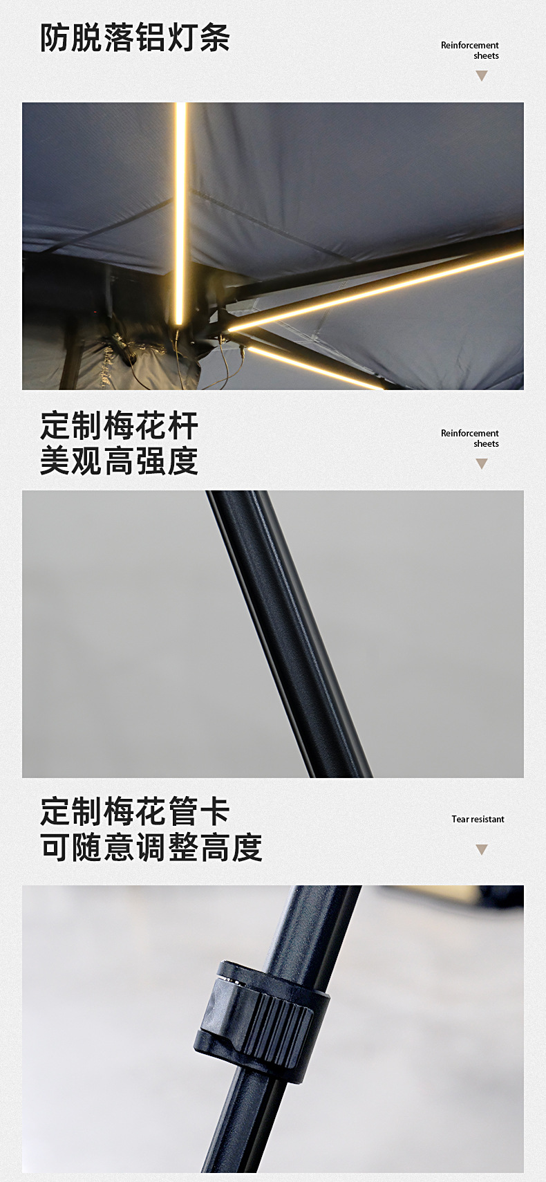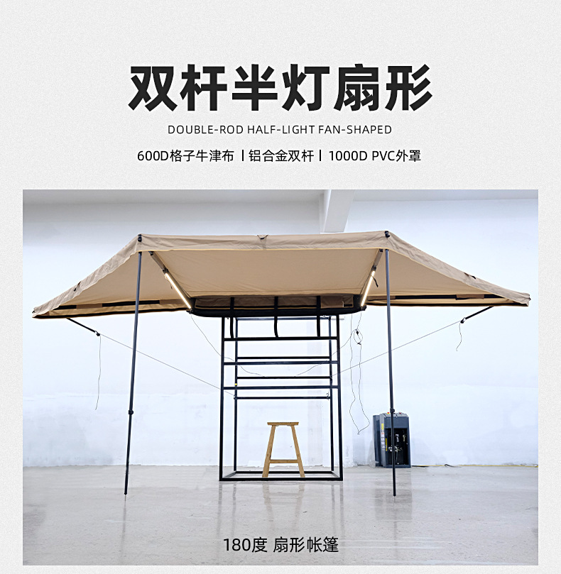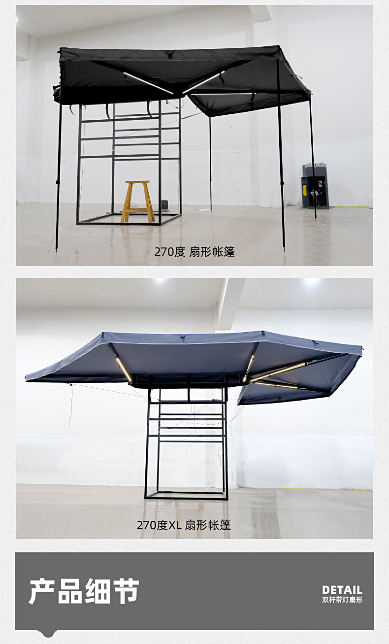 Mystery Deer Fábrica directa Carpa de techo en forma de abanico de doble poste con luces Carpa lateral de 270 grados Ciruela de techo en forma de abanico de 270 grados