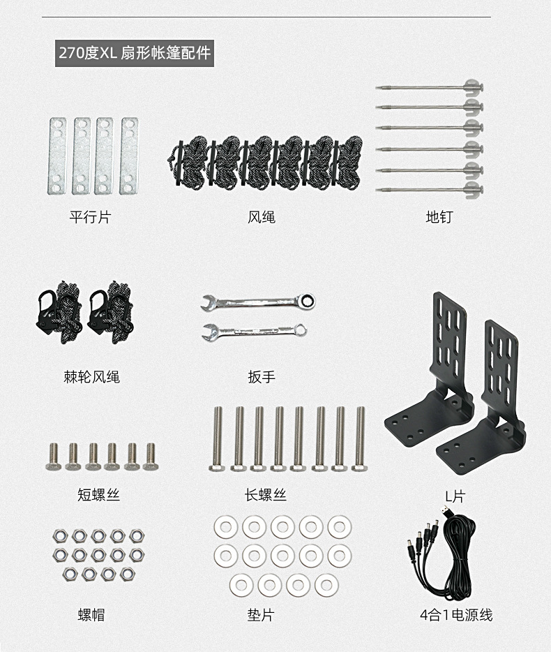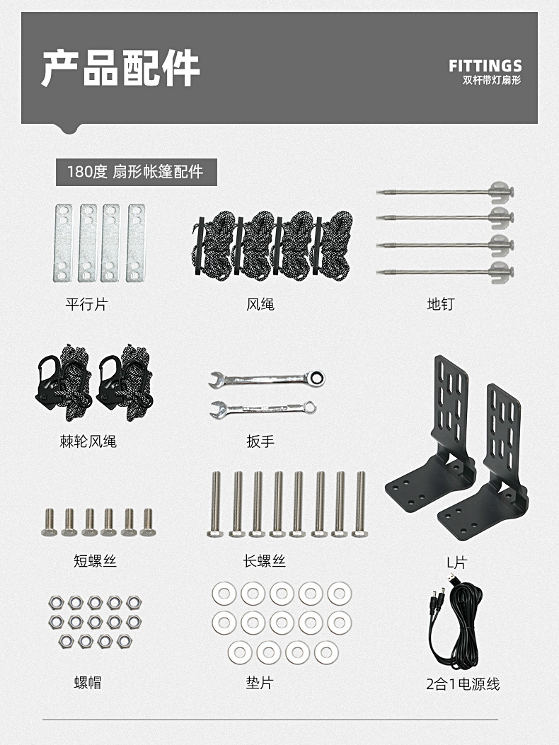 | Número de personas aplicables | 2m doble varilla con luz 180 °,2,5 m doble poste con luz 180 °,2m doble varilla con luz 270 °,2,5 m doble poste con luz 270 °,2m doble poste con luz 270 ° XL,2.5m doble poste con luz 270 ° XL |