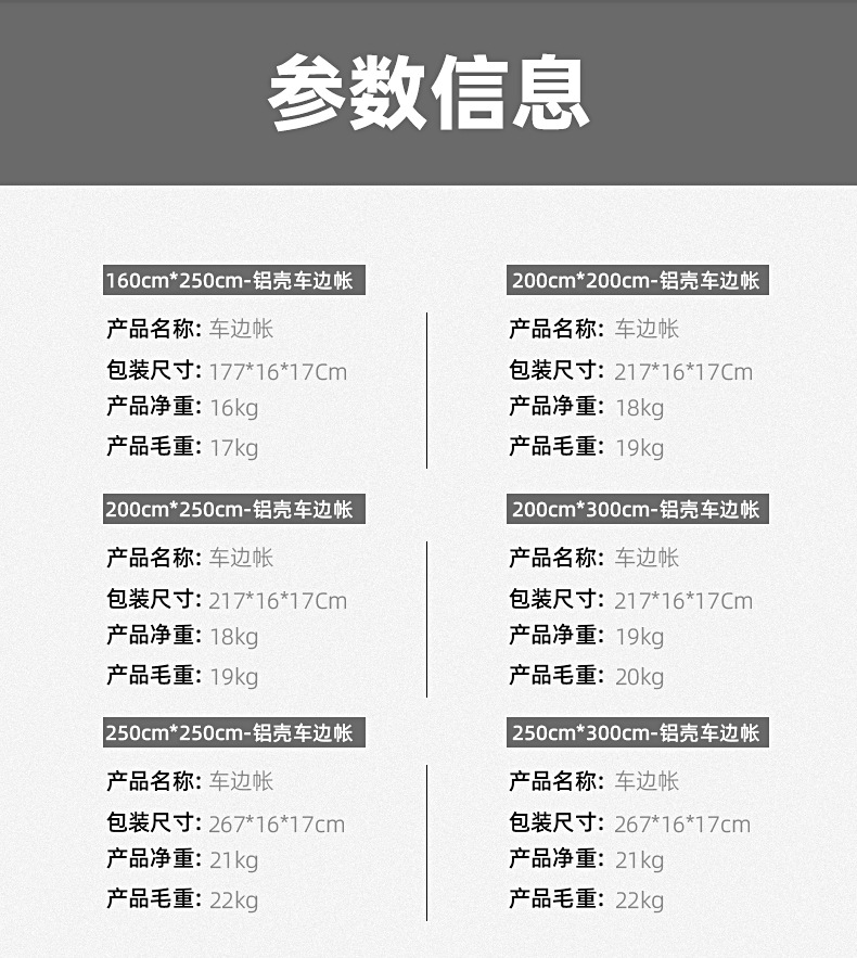 | Número de personas aplicables | Cuenta lateral de coche con carcasa de aluminio 1.6*2.5,Carpa lateral de coche de carcasa de aluminio 2*2,2*2.5 Carcasa de aluminio,Carcasa lateral de coche de carcasa de aluminio 2*3,Cuenta lateral de coche con carcasa de aluminio 2.5*2.5,Cuenta lateral de coche con carcasa de aluminio 2.5*3 |