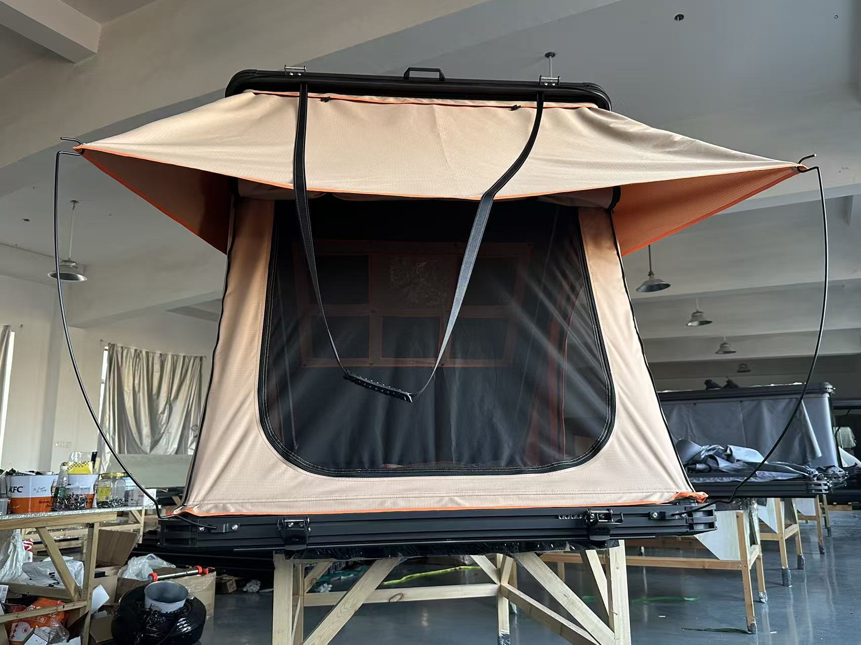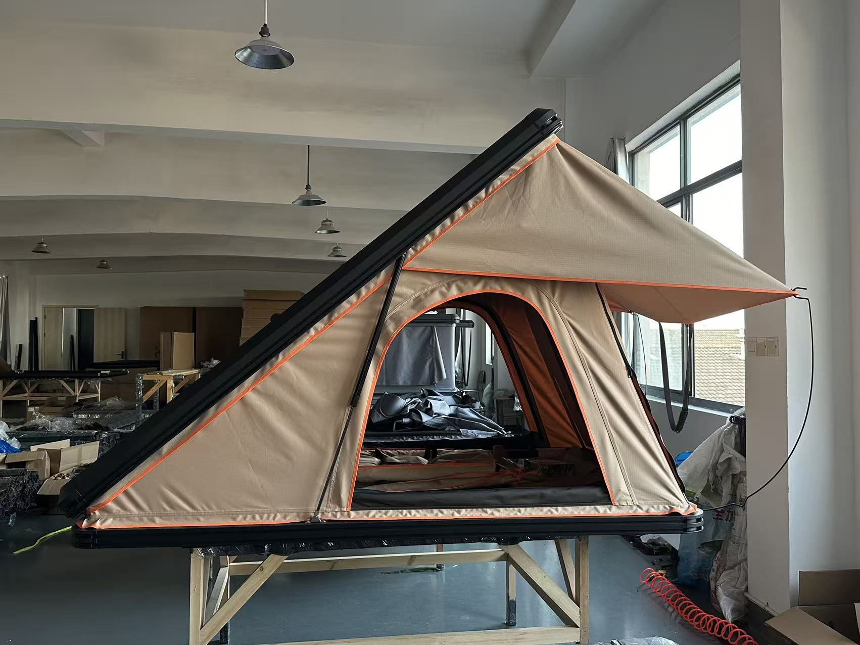 Fabricantes al por mayor de aleación de aluminio triangular sombrilla al aire libre camping viaje a prueba de lluvia gruesa techo duro