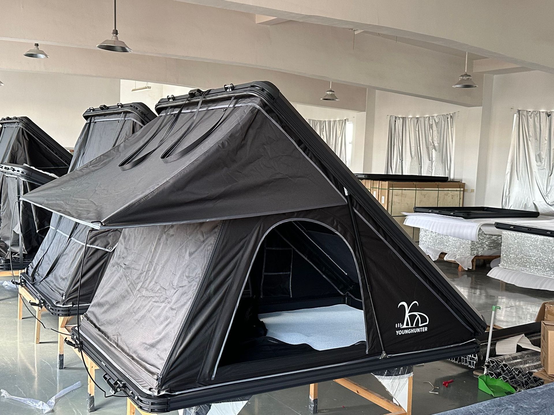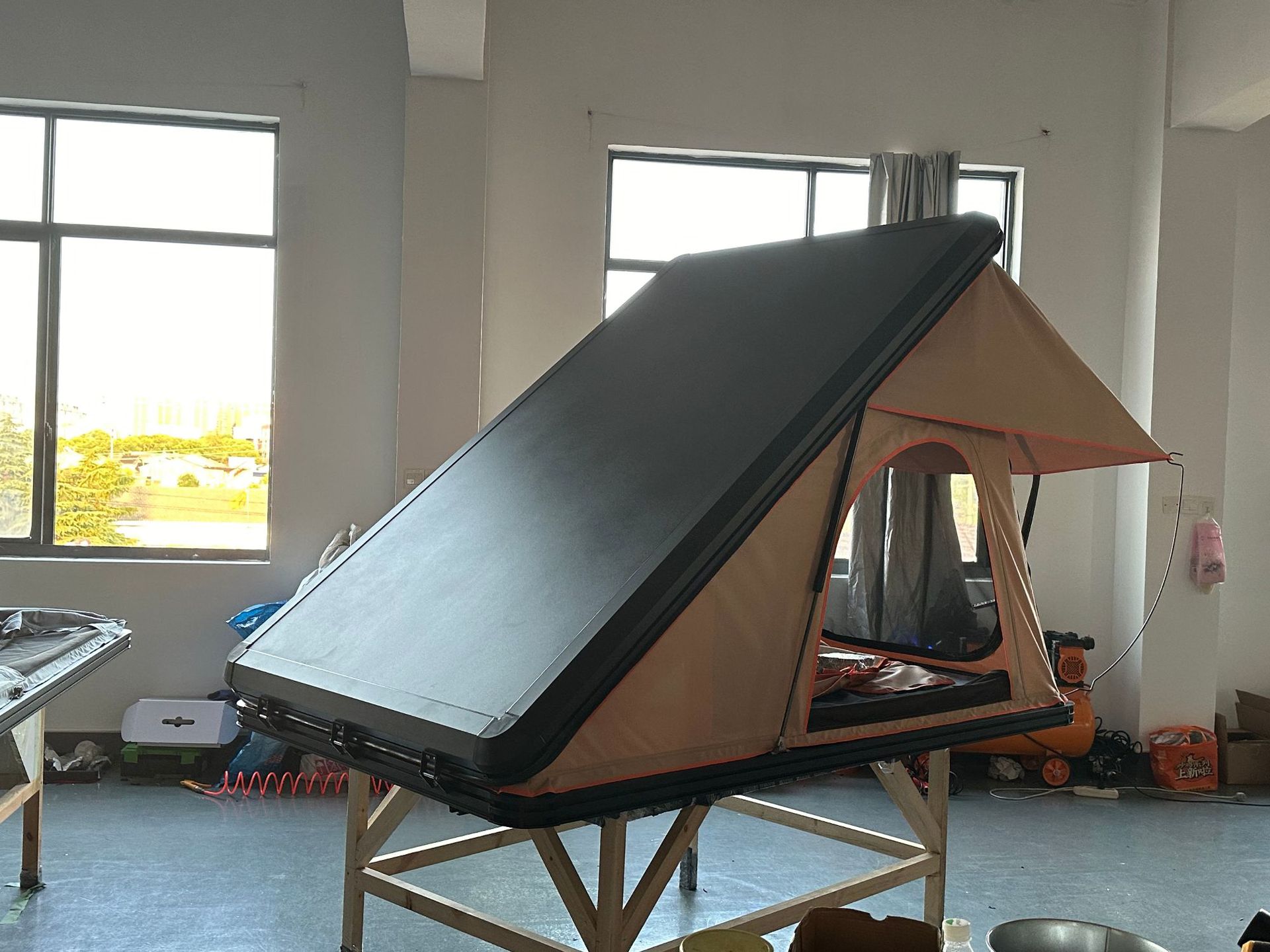 Fabricante mayorista de aleación de aluminio triangular sombrilla techo camping RV al aire libre viaje a prueba de lluvia acampamiento espeso