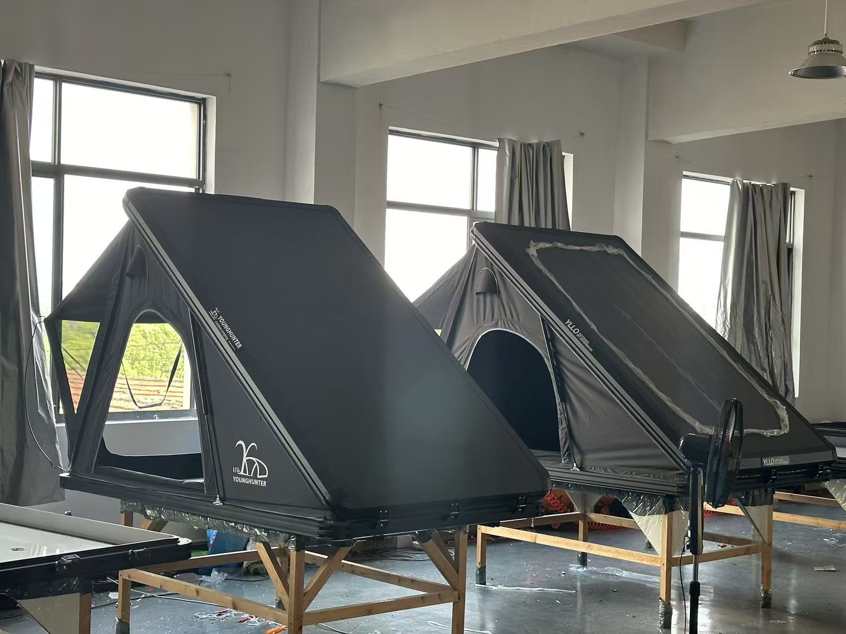 Carpa de techo de aleación de aluminio triangular de cuatro lados autoconductora al aire libre totalmente automática a prueba de lluvia carretera carpa de vehículo