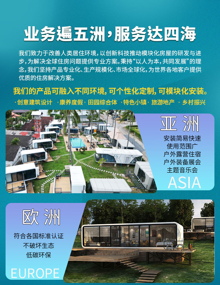 Casa integrada móvil Área escénica Resorts Hotel Camping Residence Star Sunshine Room Modular Space Capsule