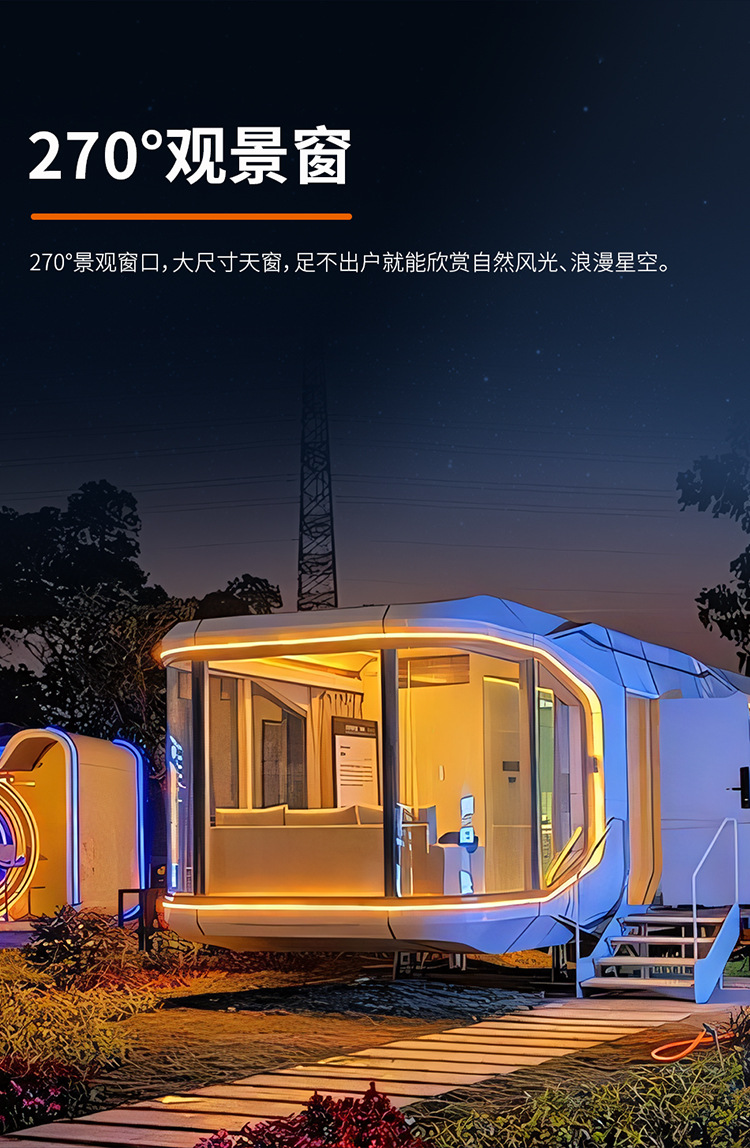 Casa inteligente móvil de cápsula espacial famosa en línea alojamiento residencial al aire libre sala de sol escénica fábrica de contenedores de vivienda terminados