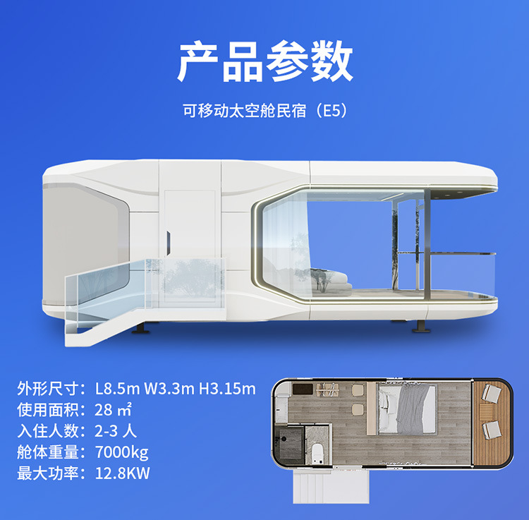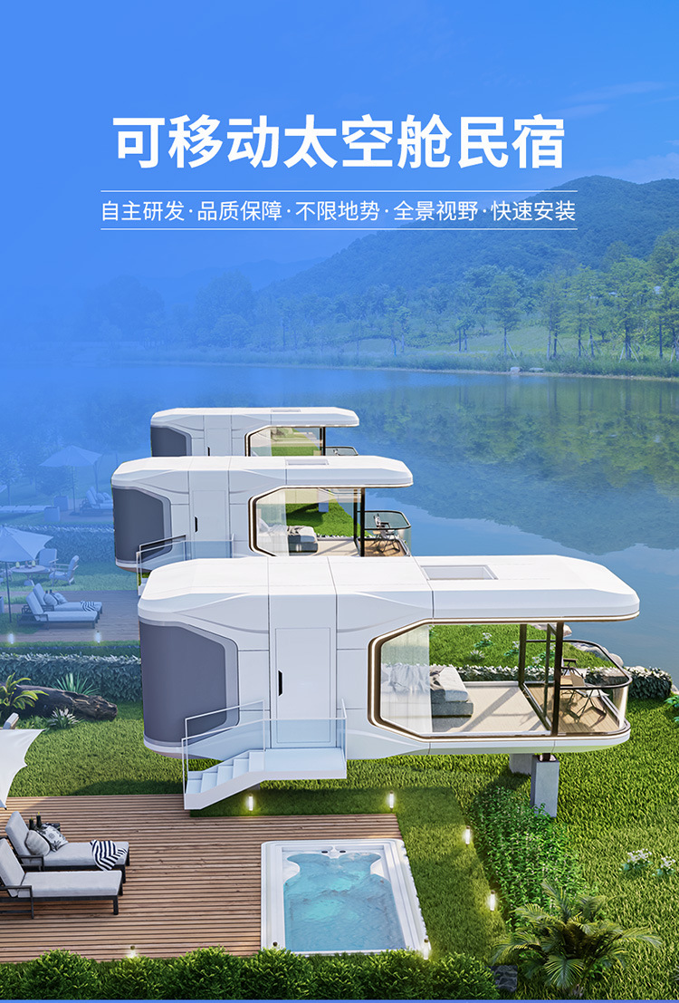 Casa integrada de remolque y colgante cápsula espacial residencial lugar escénico de camping estrella casa con ruedas red contenedor rojo RV