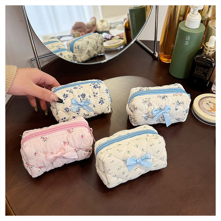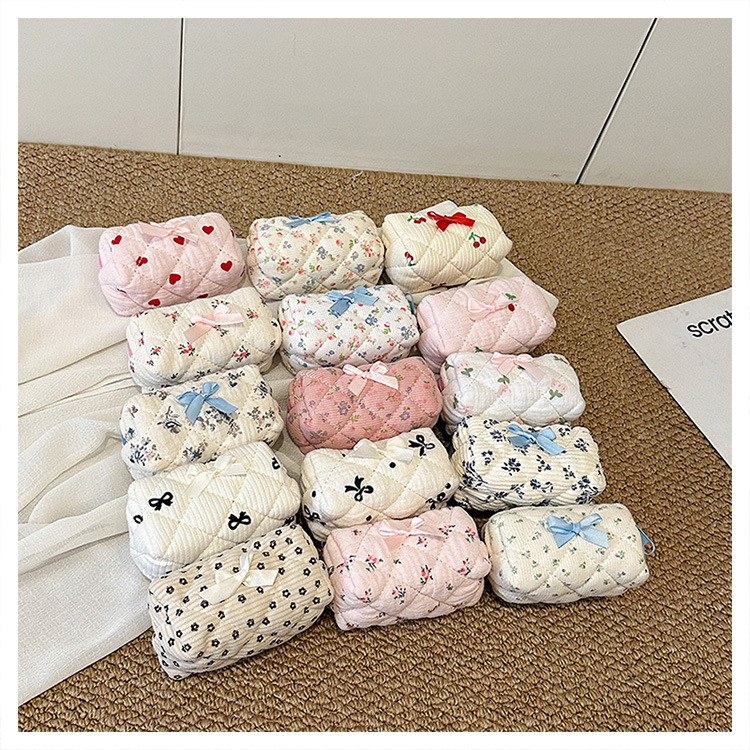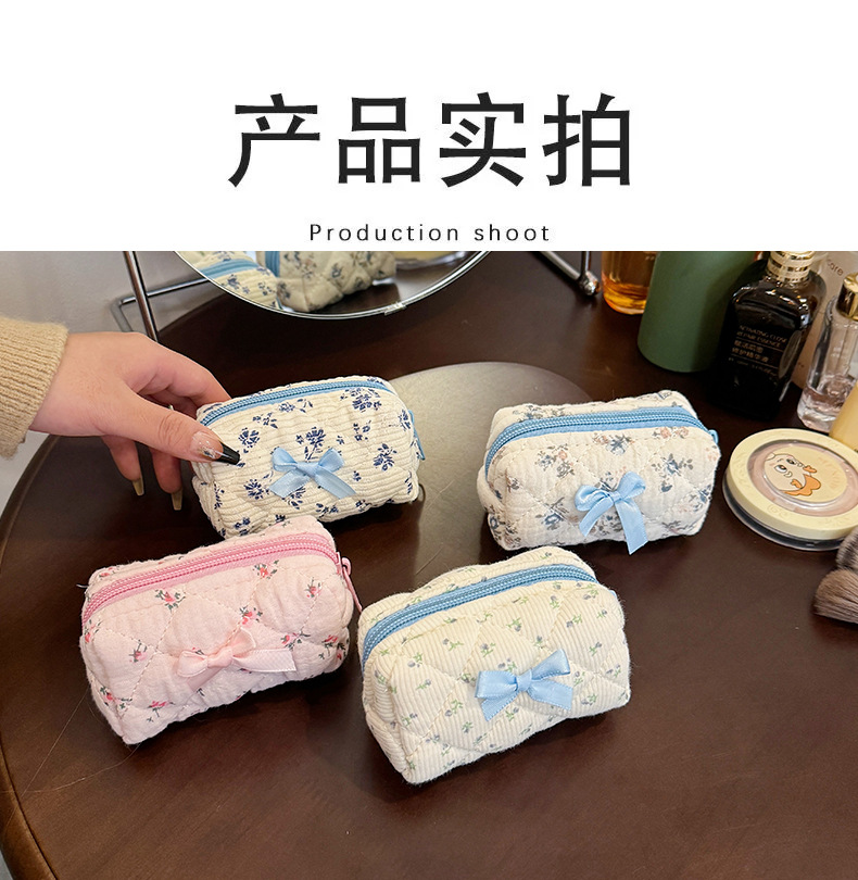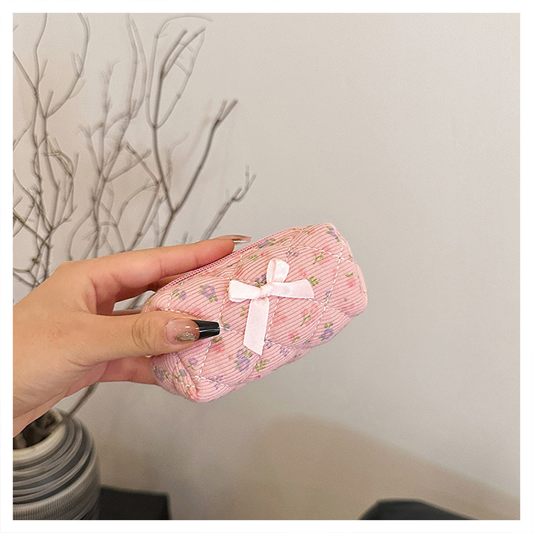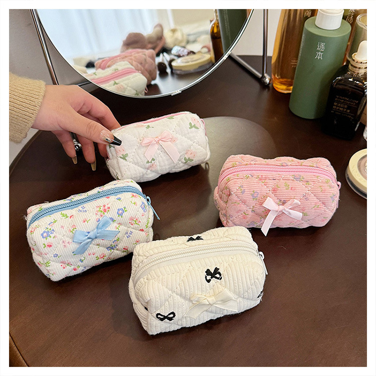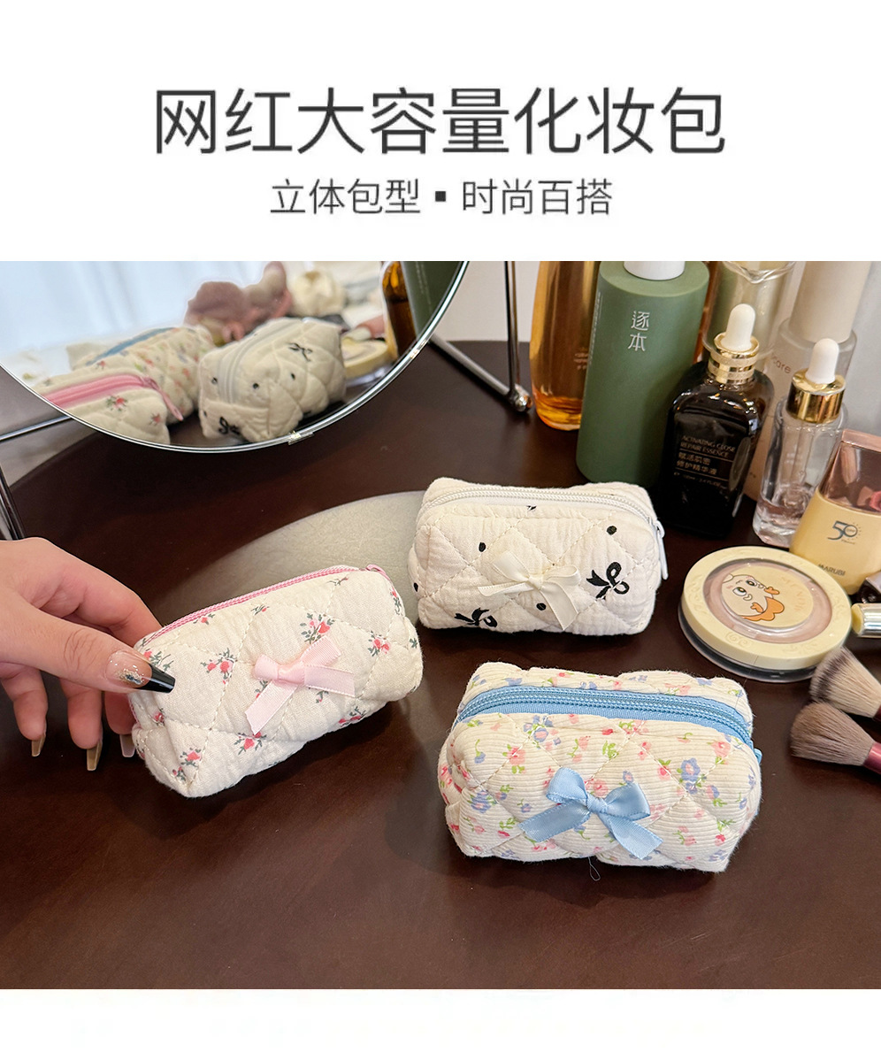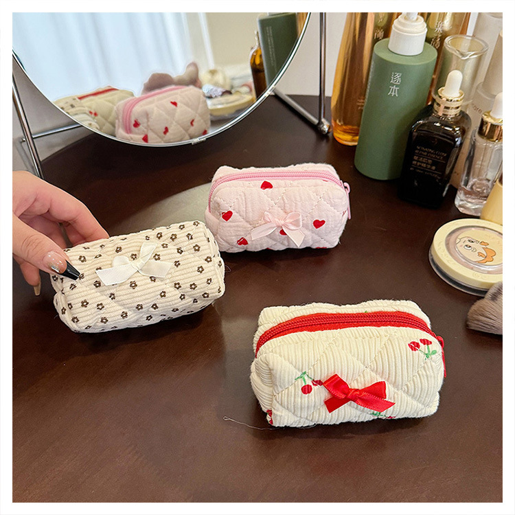 Bolso cosmético con lazo de corazón para niña Bolso de lavado portátil portátil de gran capacidad para mujer Bolsa de almacenamiento de viaje Ventas directas de fábrica