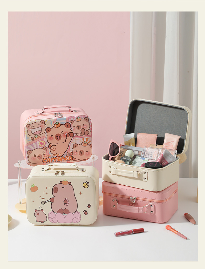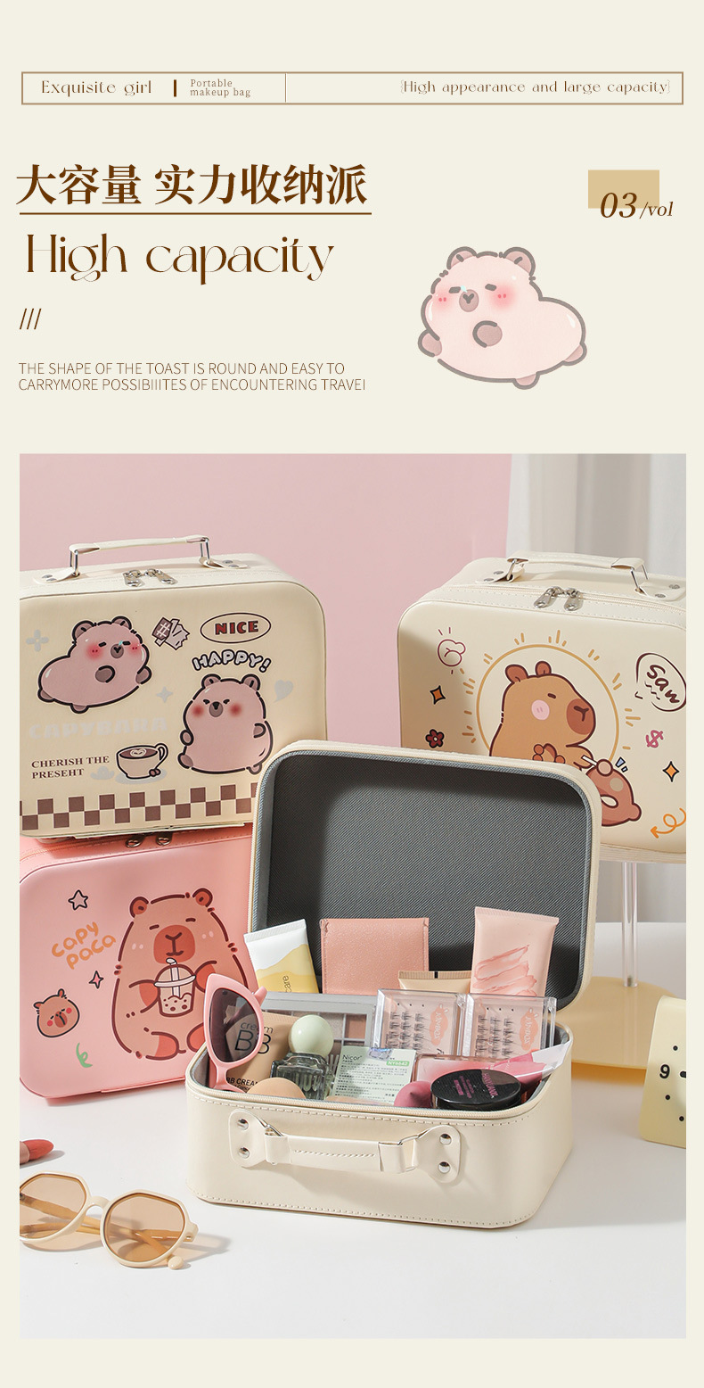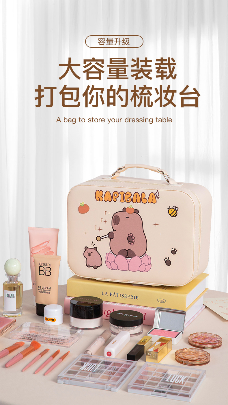 Caja de maquillaje de gran capacidad, bolsa de maquillaje portátil, caja de almacenamiento portátil, diseño de nicho de cosméticos multifuncional