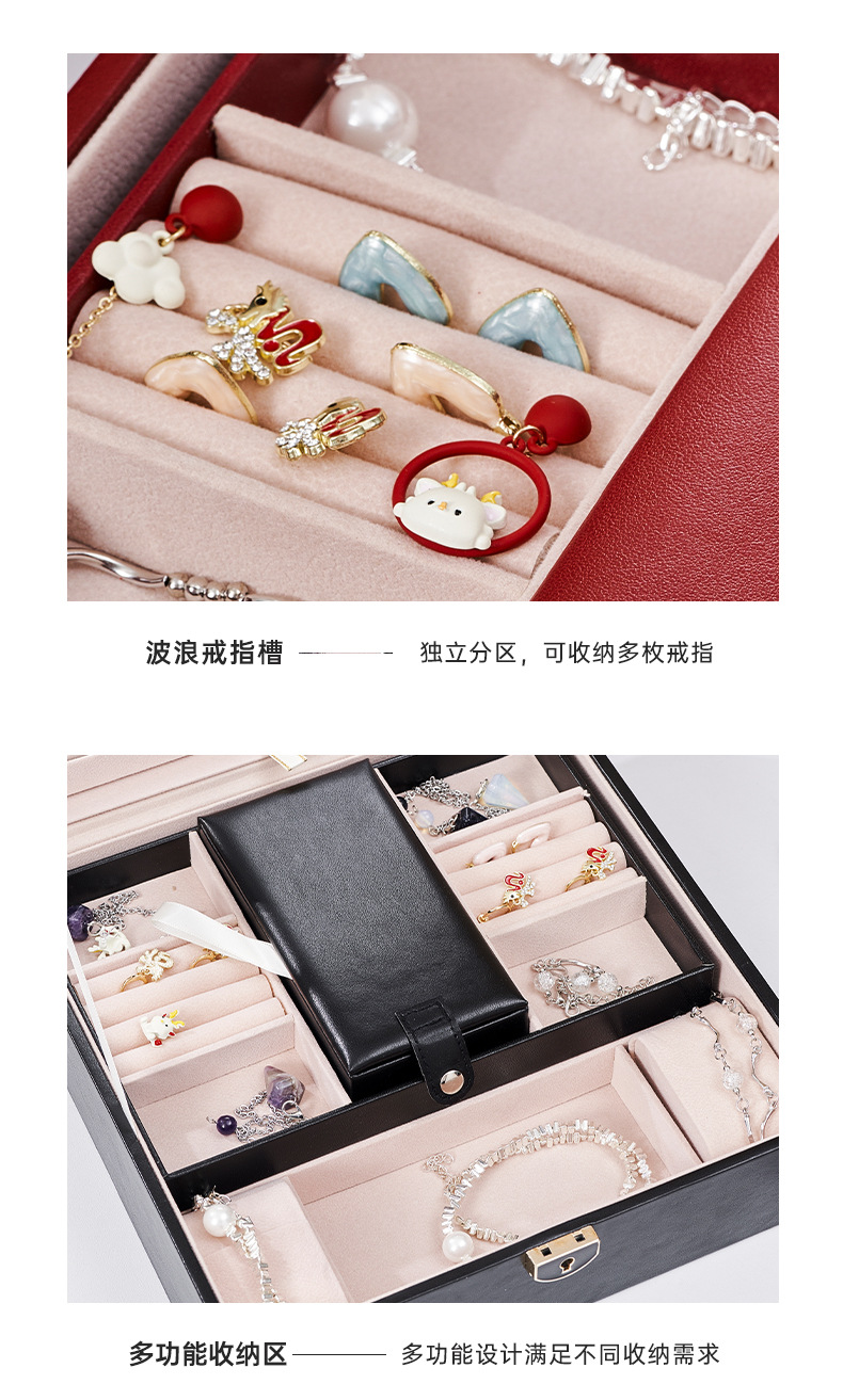 Boda cumpleaños alta sensación caja de joyería anillo de gran capacidad relojes pulseras portátiles con joyería caja de almacenamiento de bloqueo al por mayor