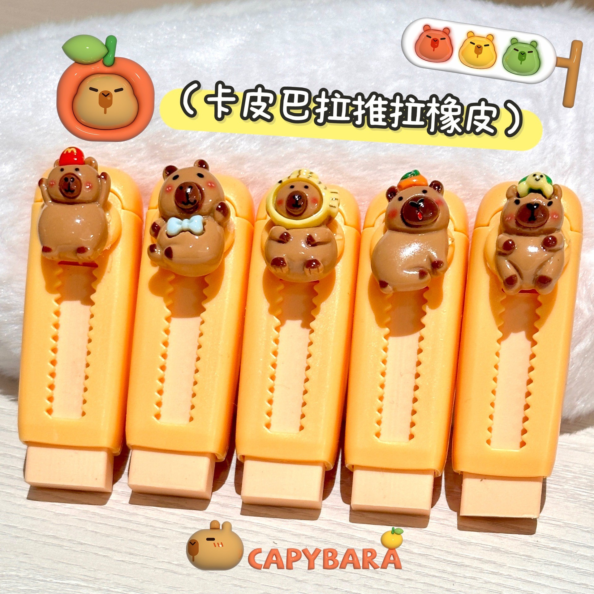 Parche de resina capibara push-pull goma lindos conejillos de indias borradores estudiantes exámenes retráctiles empujan goma