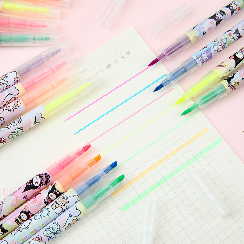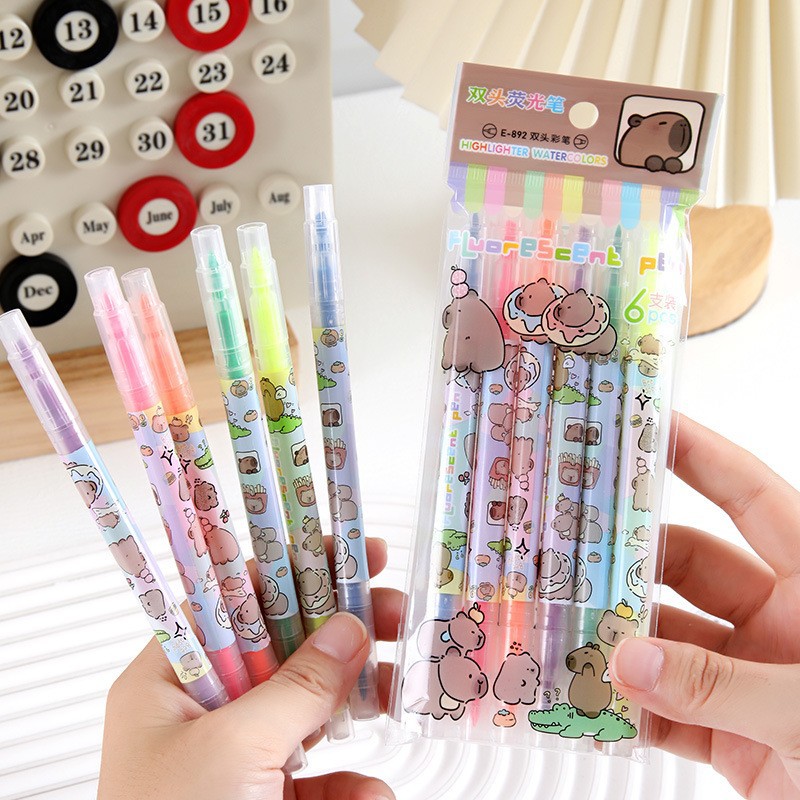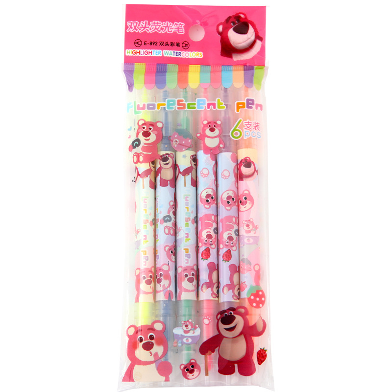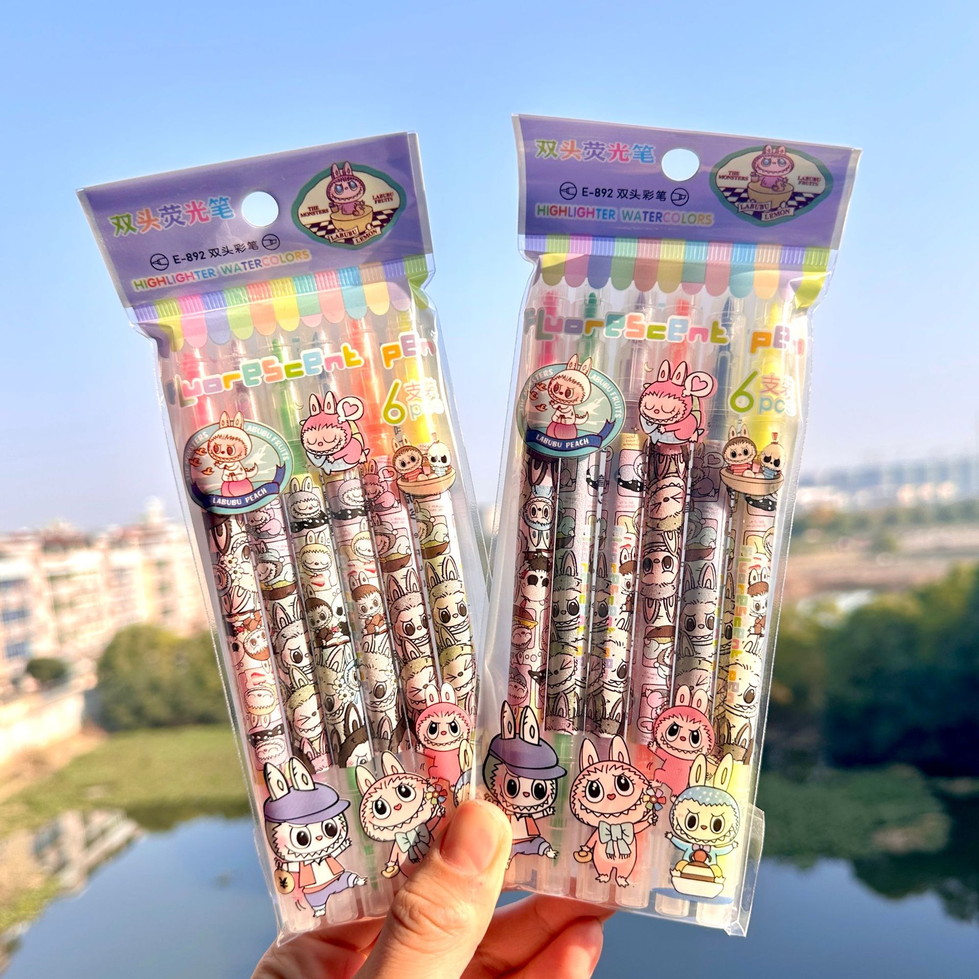 6 juegos de dibujos animados de doble cabeza marcador de punta de color