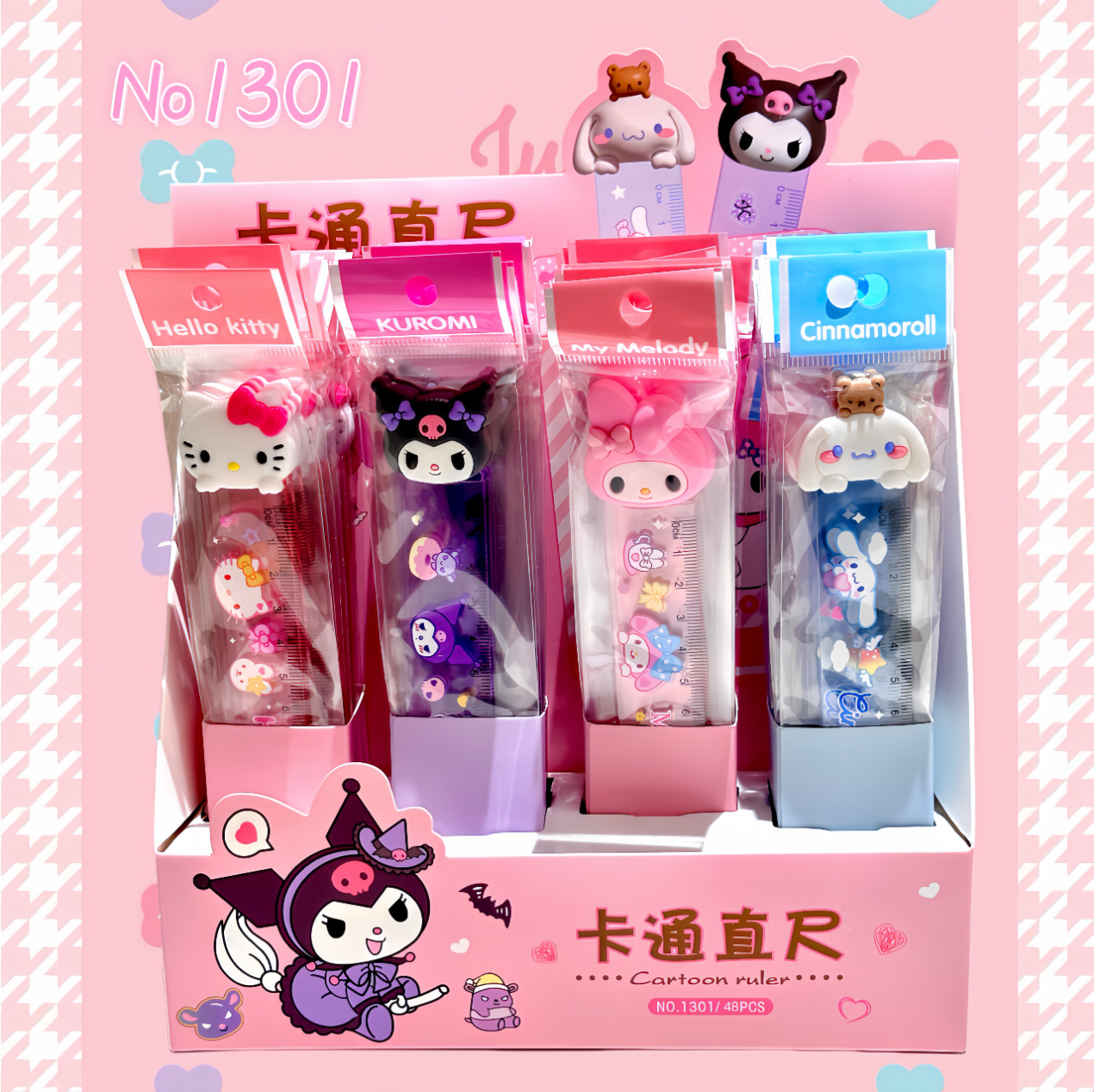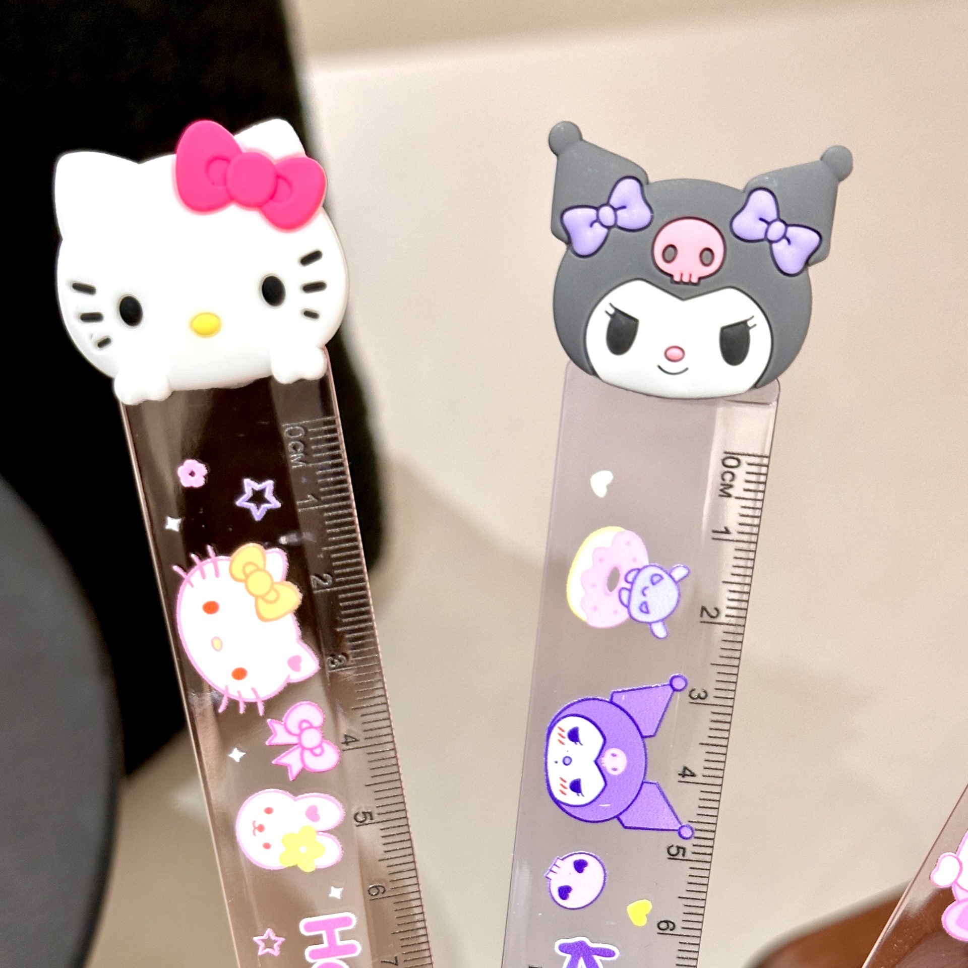 Sanrio 15cm marcadores regla Kulomi forma muñeca de silicona cabeza dibujos animados hermosa regla recta regla creativa para estudiantes
