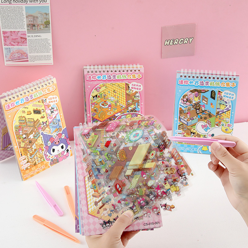 Linda pegatina de paisajismo Sanliou 3D escena en miniatura collage bricolaje descompresión etiqueta de cuenta manual premio del 1 de junio
