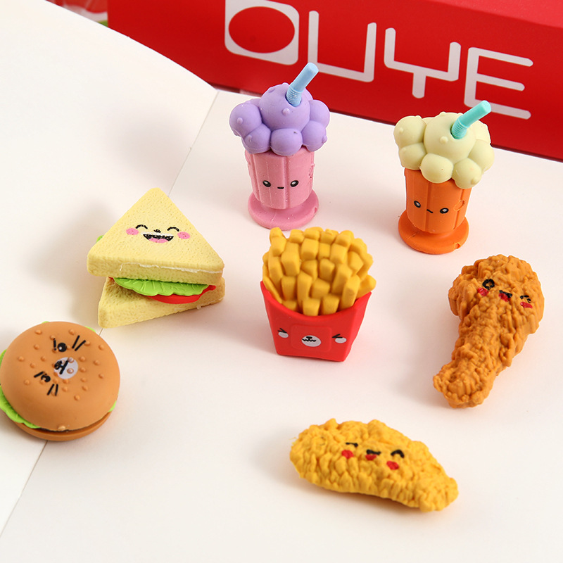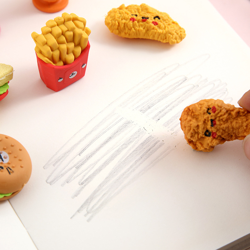 Alimentos limpiadores de pollo frito hamburguesas patatas fritas modelado creativo limpio no es fácil dejar marcas de papelería estudiantes al por mayor