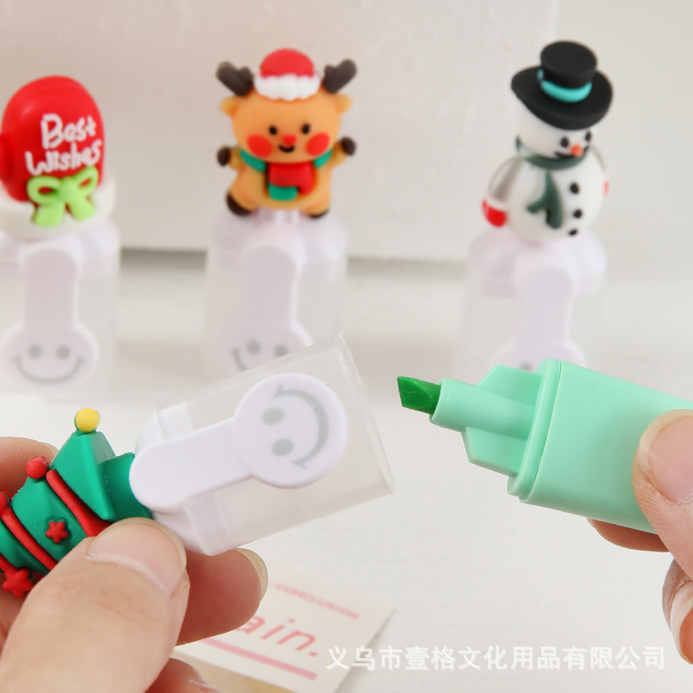 Serie de Navidad mini 6 color resaltador conjunto de dibujos animados lindos marcadores de color de alto valor de los estudiantes