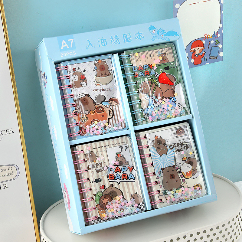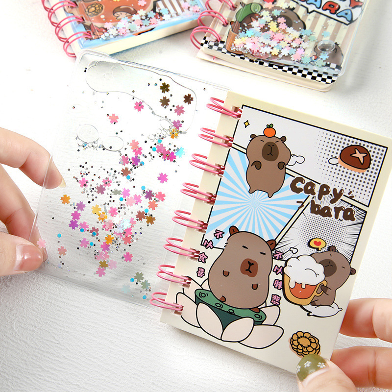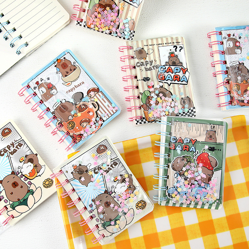 Kapibala en el libro de bobina de aceite, arenas movedizas de dibujos animados, libro de cuentas de mano de boutique lindo, libro de bolsillo, papelería para estudiantes