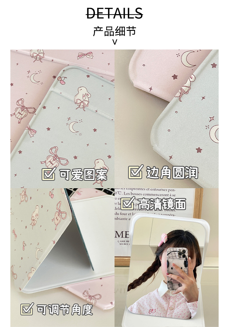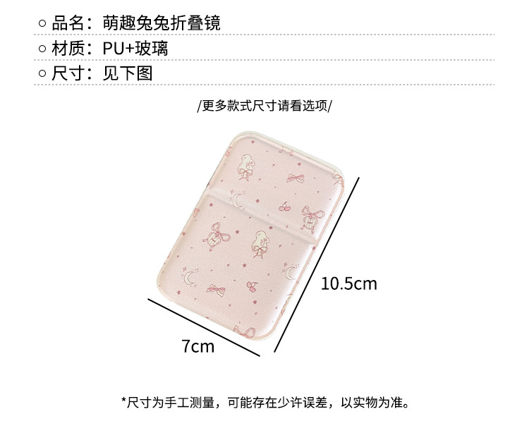 | Colores | Espejo plegable de conejo rosado-pequeño,Espejo plegable de conejo azul-pequeño,Espejo plegable de conejo rosado-grande,Espejo plegable de conejo azul-grande |