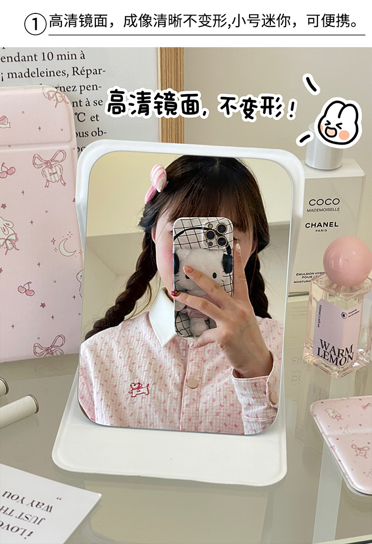 Espejo de dibujos animados, espejo de tocador de escritorio para el hogar, espejo de maquillaje plegable portátil para la oficina del dormitorio de estudiantes
