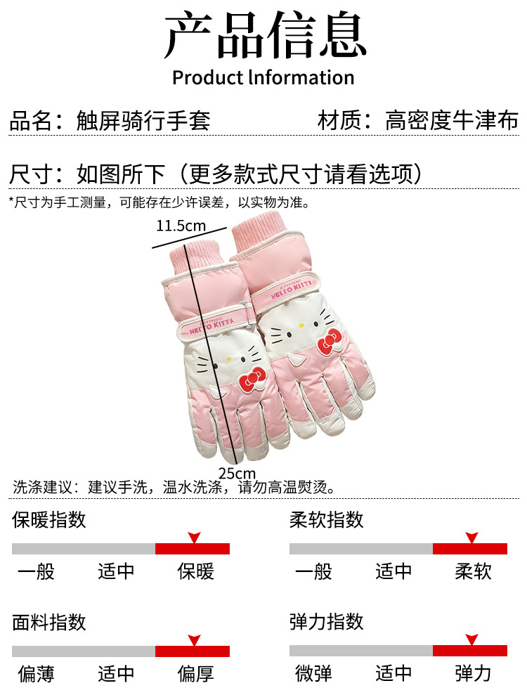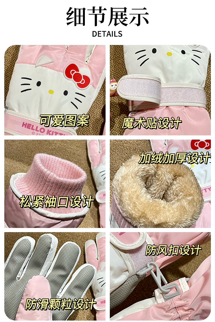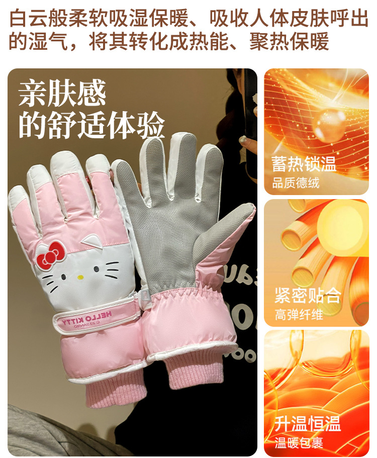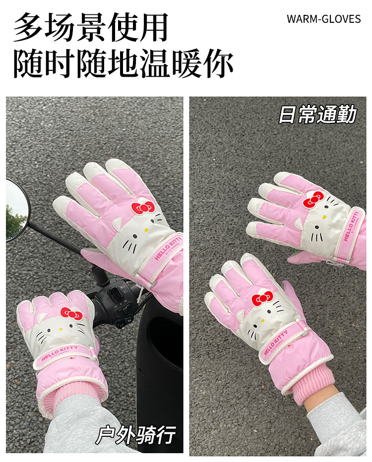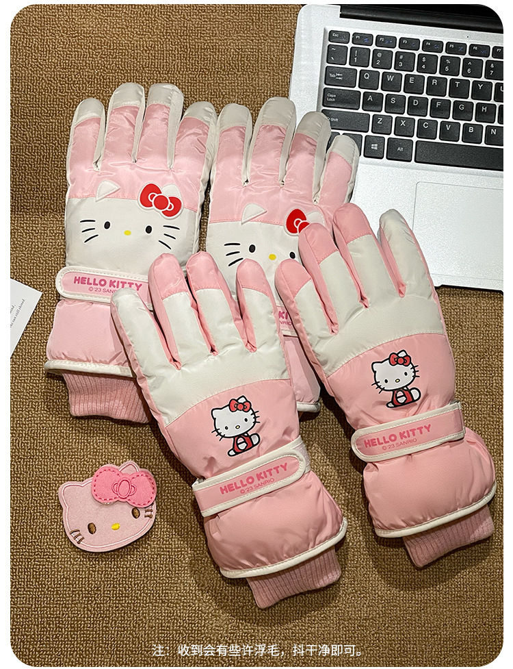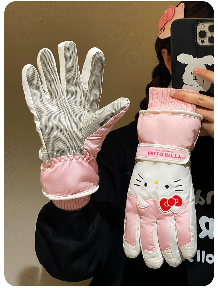 Guantes de esquí auténticos de invierno para mujeres gruesas hellokitty conducir guantes de algodón caliente pantalla táctil