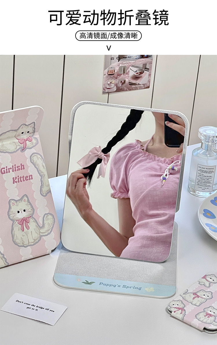 Spot nuevo espejo de maquillaje de escritorio portátil y simple espejo de tocador plegable portátil para mujer espejo de dormitorio para estudiantes en casa