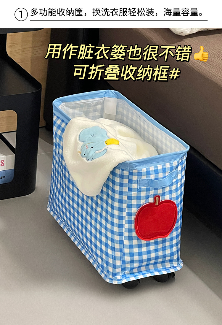 Cesta de almacenamiento debajo de la mesa con ruedas, carro pequeño, estante de almacenamiento, dormitorio, dormitorio, artefacto de ropa, cesto de ropa sucia de hendidura estrecha móvil
