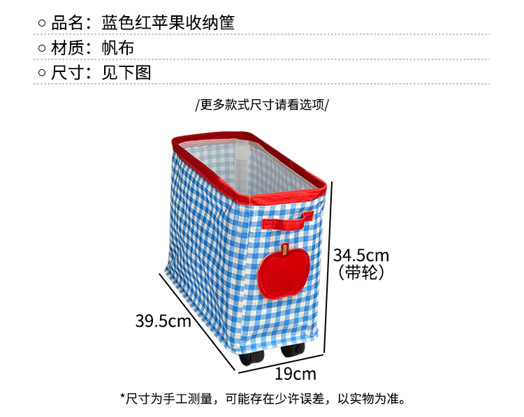 | Color | Cesta de almacenamiento de manzanas de borde azul [con ruedas], cesta de almacenamiento de manzanas de borde rojo [con ruedas] |