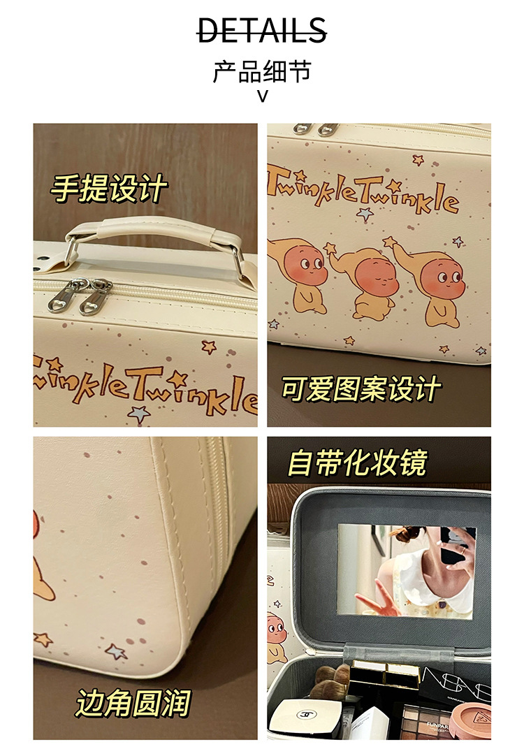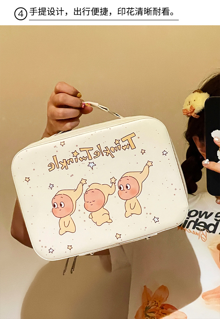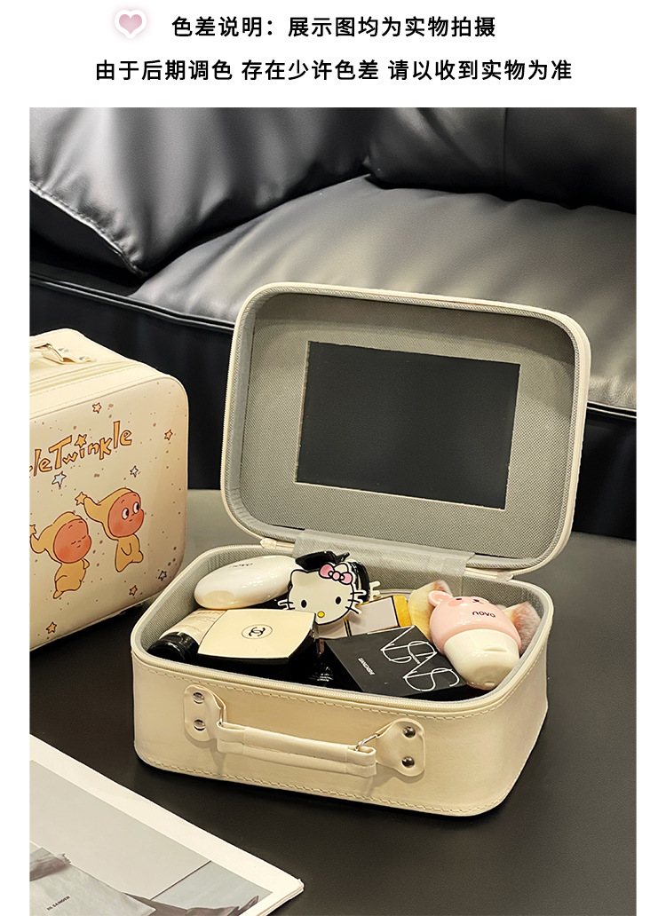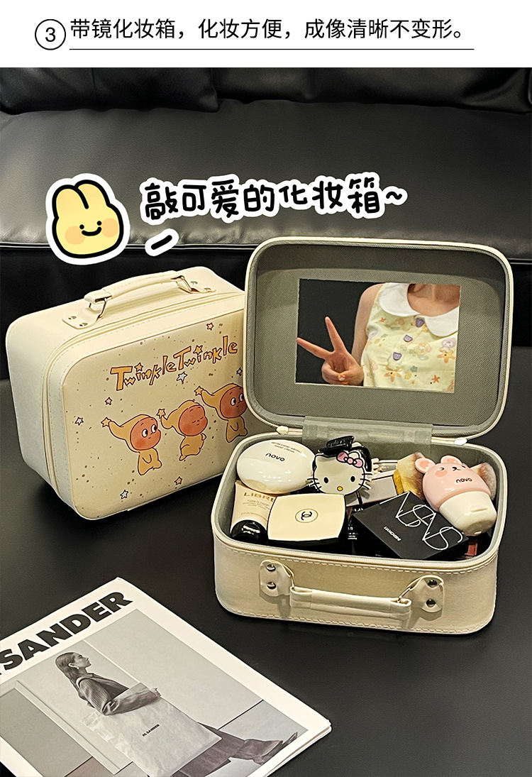 Hermosa bolsa de maquillaje portátil impermeable, caja de almacenamiento de maquillaje de gran capacidad, bolsa de maquillaje portátil con espejo